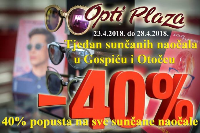 Optika Optiplaza u svojim poslovnicama u Gospiću i Otočcu priprema za kupce tjedan sunčanih naočala. Akcija će trajati od ponedjeljka, 23.4.2018. do subote 28.4.2018.