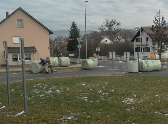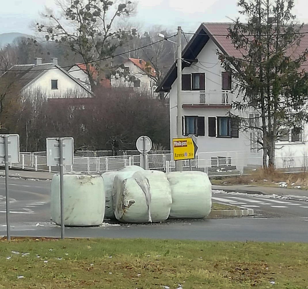 Objavljujemo fotografije čitatelja koji je jučer zatekao na rotoru u Ličkom Osiku razbacane bale sijena.  Ne, ne radi se o poticaju rotora već rasutim balama koje je netko prevozio.  Na svu sreću nitko nije ozlijeđen, ali su nesretni ljudi imali dosta posla da oslobode rotor i ponovno natovare bale.