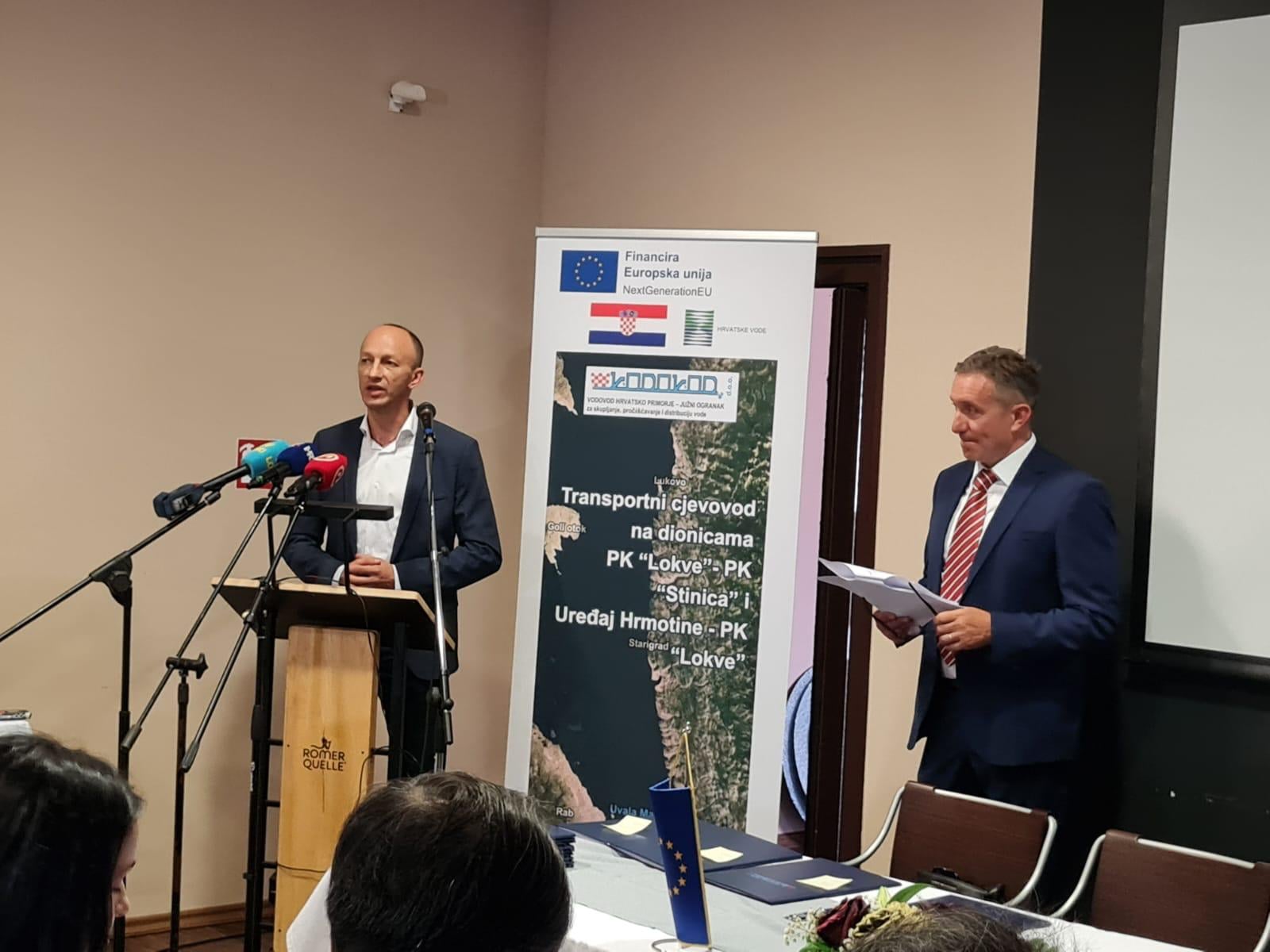 SENJ Potpisan je ugovor o izgradnji paralelnog cjevovoda na dionicama PK Lokve – PK Stinica i Uređaj Hrmotine – PK Lokve. Glavni cilj je osigurati dovoljne količine vode na čitavom području. Prvenstveno za otok Pag kojem se ne može isporučiti dovoljno vode. Projekt je procijenjen na nešto više od 36,5 milijuna eura (bez PDV-a), a nakon natječaja koji je dva puta ponavljan, vrijednost se popela na 46,6 milijuna eura.