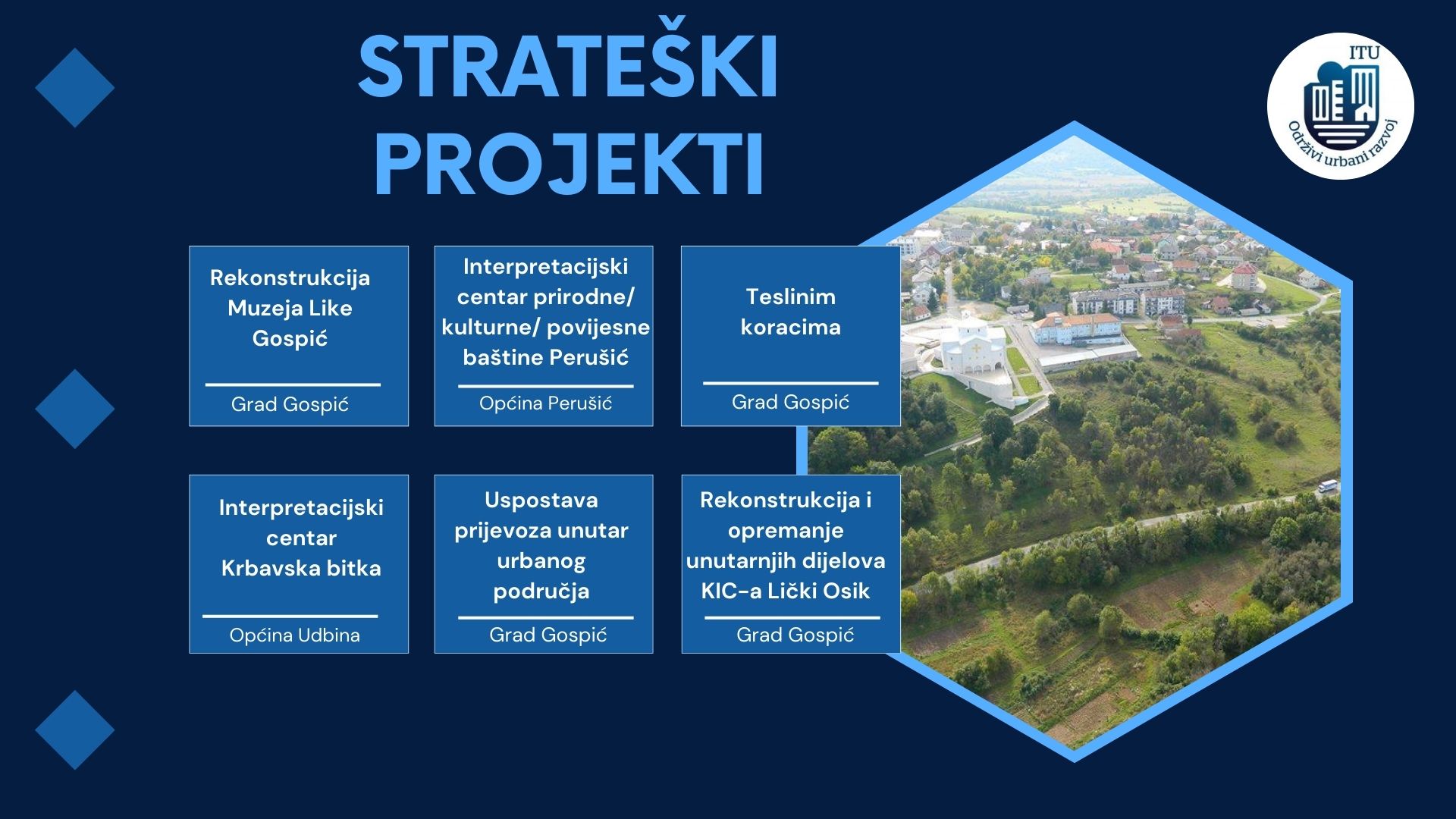Način na koji su pripremani projekti osigurava integraciju područja prilikom ulaganja u razne sektore – od obnove kulturnih prostora do povezivanja sadržaja i mobilnosti stanovništva. Strategijom razvoja urbanog područja definirani su prioriteti, a to je prvenstveno teritorijalna integracija i mobilnost lokalnog stanovništva, ali i posjetitelja i turista obzirom da Lika doživljava i svoj turistički uzlet, te je nužno povećati turističko – prezentacijske kapacitete ovog dijela Hrvatske.