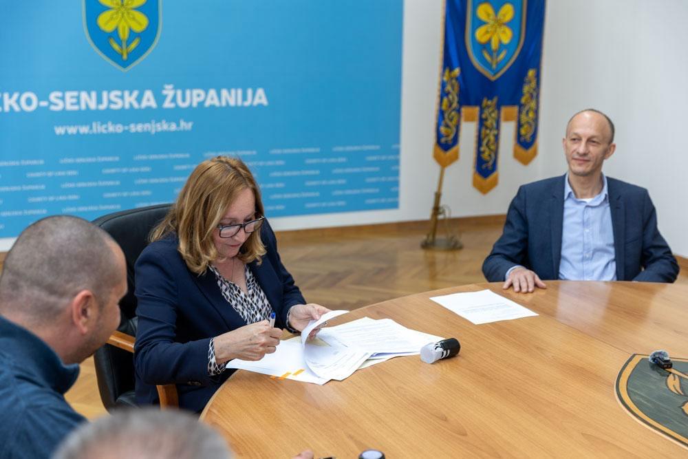 U Dvorani za sastanke Ličko-senjske županije danas je potpisan ugovor o  izvođenju druge faze radova na uređenju stacionara Doma zdravlja Ličko-senjske županije u Vrhovinama, što uključuje unutarnje i vanjske radove, kao i radove na fasadi, a vrijednost istih iznosi 99.716,63 eura s PDV-om. Ugovor su potpisali ravnateljica Doma zdravlja Ličko-senjske županije Dubravka Jakšetić i direktor tvrtke LUMEG-IN d.o.o. Ivan Nikšić, uz nazočnost župana Ernesta Petrya i njegove zamjenice Jasne Orešković Brkljačić.