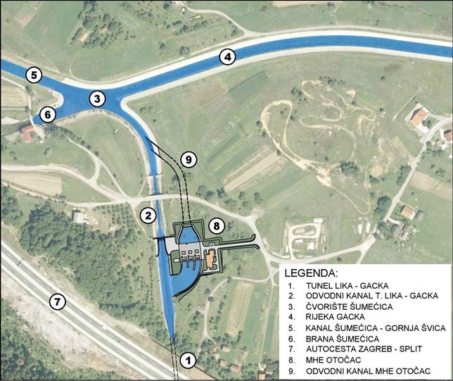 Mala hidroelektrana Otočac sastojat će se od tri proizvodne jedinice, a izgradit će se na području naselja Šumečica uz odvodni kanal tunela Lika-Gacka, kojim se vode rijeke Like prevode u rijeku Gacku. Stavljanjem u funkciju MHE Otočac dodatno se povećava energetska iskoristivost voda rijeke Like, odnosno iskorištava se njen preostali hidroenergetski potencijal, prije njenog spajanja s rijekom Gackom. Izgradnjom se neće promijeniti postojeći protok rijeke Like, već će se voda umjesto protoka preko dvije postojeće vodne stepenice preusmjeriti na objekte buduće MHE Otočac.