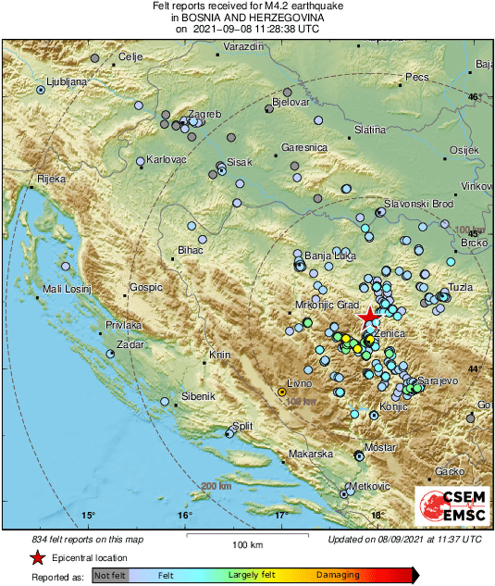 Epicentar je bio 19 km sjeverno od Zenice, 11 km jugozapadno od Žepča.