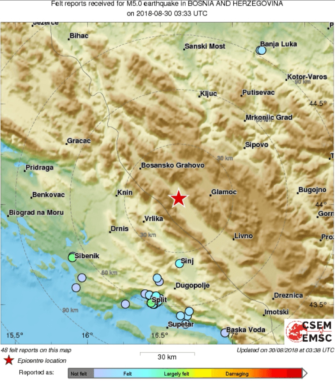 U 5:33 sati čitavu Dalmaciju i područje južne Bosne i Hercegovine zatresao je snažan potres. Prema prvim informacija EMSC-a, epicentar potresa bio 16 km zapadno od Glamoča, na dubini od dva kilometra te je magnituda iznosila 4.9 po Richteru. U Hrvatskoj se potres najjače osjetio na području Vrlike. Prvo se osjetio manji potres, a uskoro nakon i glavni udar. Ovo je jedan od jačih potresa koji se osjetio u Dalmaciji u posljednje vrijeme. Potres ovakve jačine mogao je uzrokovati manje štete oko epicentra no svakako je izazvao veliku uznemitrnost stanovništva diljem Dalmacije i južne BiH. Kijevo, Maovce, Podosoje i još neka mjesta u Zagori ostala su bez struje nakon potresa Gotovo na istom mjesto u 5:45 zabilježen je novi, manji potres, magnitude 3,1 po Richteru.