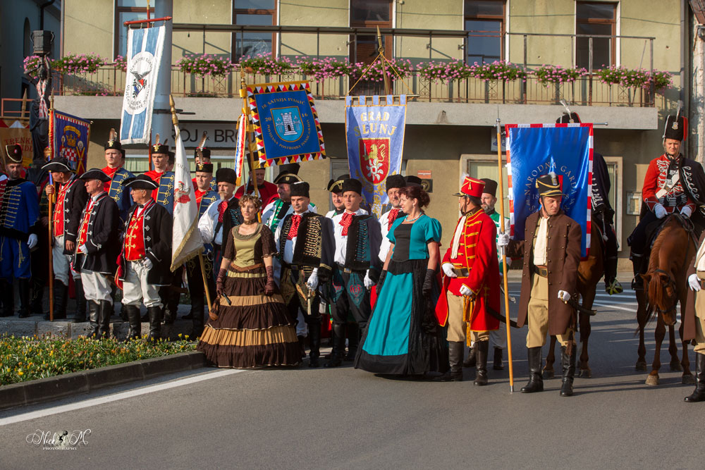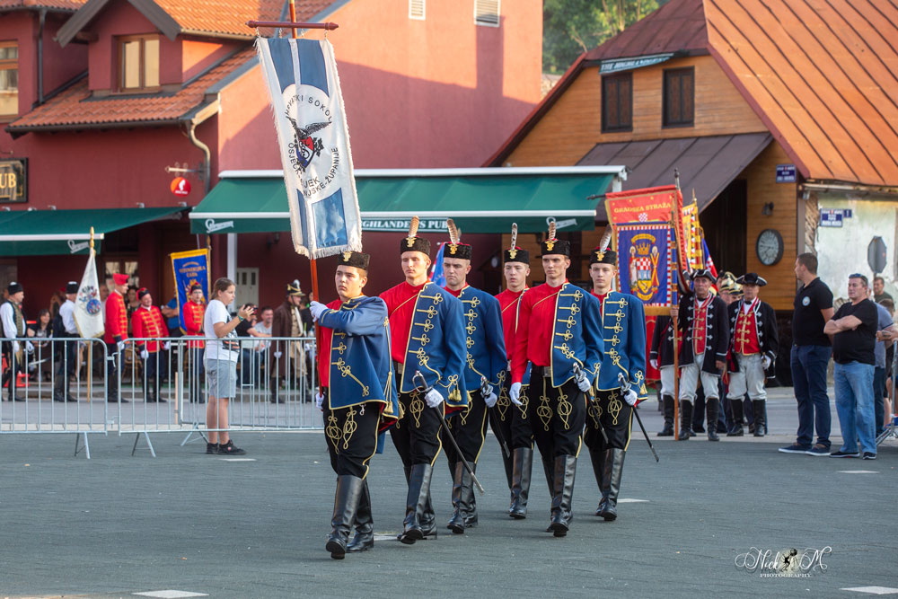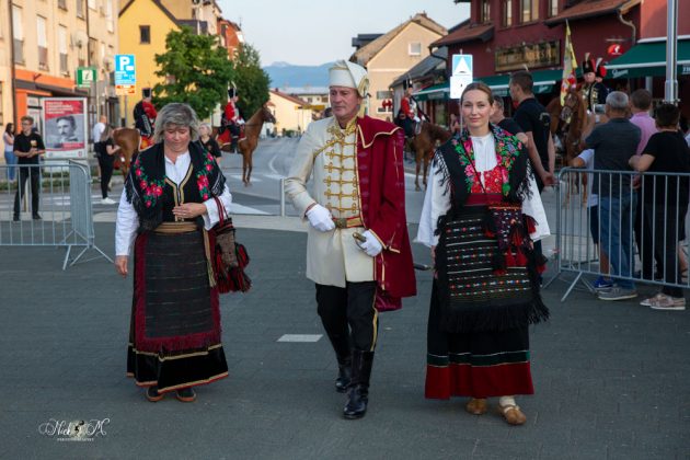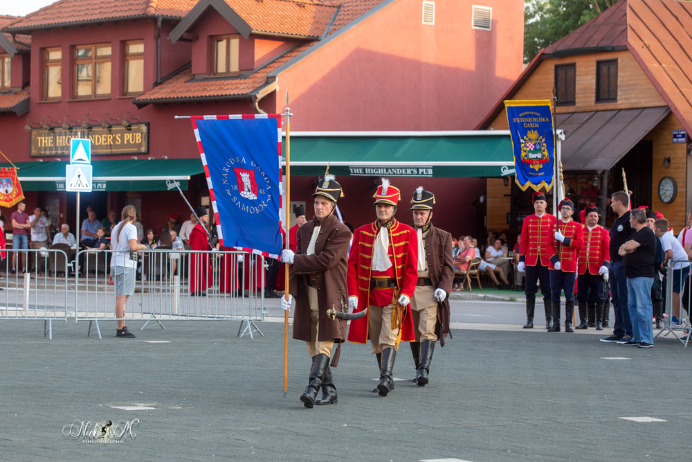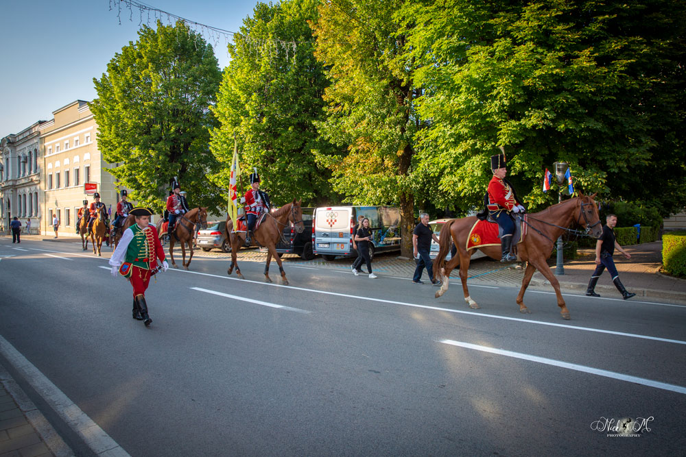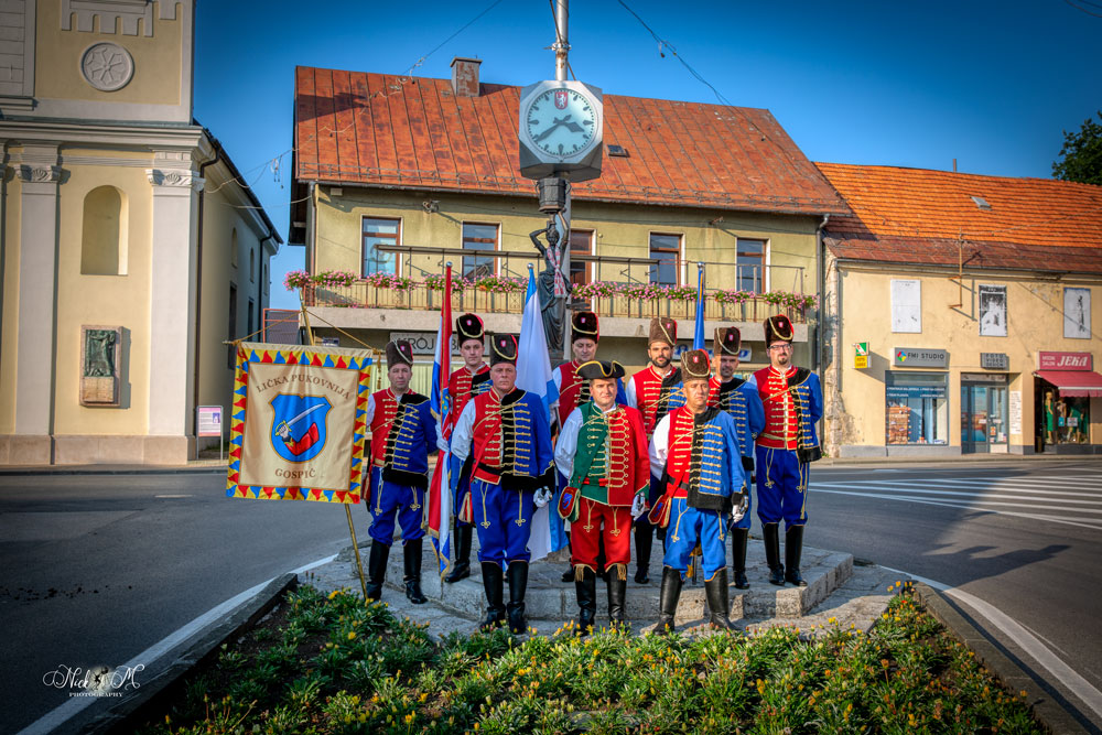 Povodom Dana  Grada Gospića, Svete Marije Mgdalene, večeras su ulicama grada prodefilirale Povijesne postrojbe iz 20 pukovnija diljem Hrvatske. Kolonu je predvodila Lička pukovnija Gospić čiji je zapovjednik dr. sc. Joso Vrkljan nakon postrojavanja na Trgu Sdtjepana Radića podnio prijavak županu Ernestu Petryju i gradonačelniku.