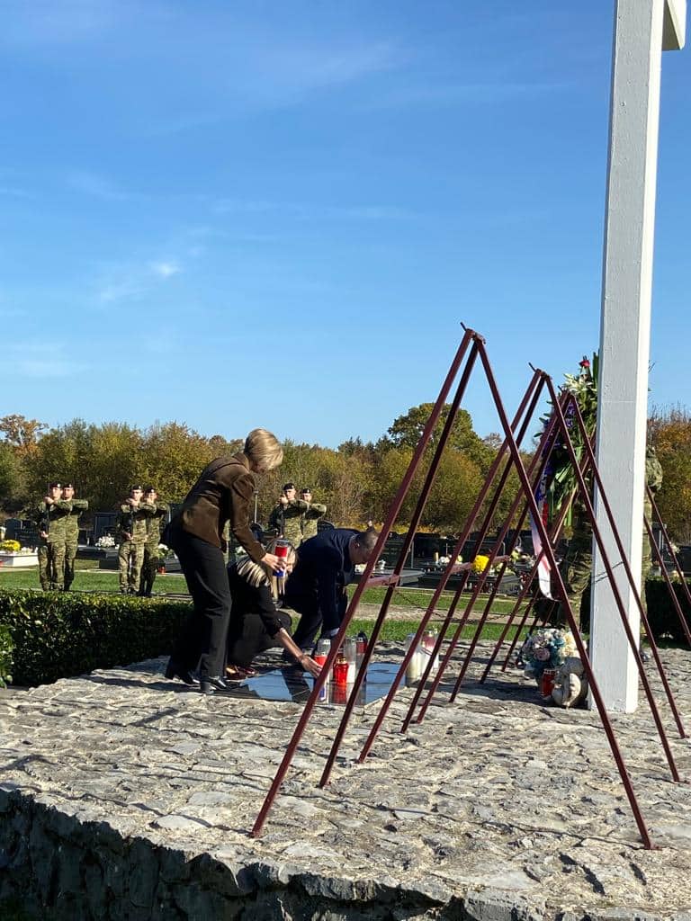 GOSPIĆ – Uoči blagdana Svih svetih i Dušnog dana, danas su kod središnjeg križa u groblju sv. Marije Magdalene u Gospiću vijence položili i svijeće zapalili izaslanik potpredsjednika Vlade i ministra hrvatskih branitelja Tome Medveda župan Ličko-senjske županije Ernest Petry, u ime MUP-a načelnik PU Ličko-senjske Zoran Zdunić, zapovjednik Motorizirane bojne „Vukovi“ bojnik Antonio Tokić, u ime MORH-a voditelj Područnog odsjeka za poslove obrane Gospić Vladimir Usmiani, zamjenica ličko-senjskog župana Jasna Orešković Brkljačić, gradonačelnik Grada Gospića Karlo Starčević sa zamjenicom Kristinom Pršom te predsjednicom Gradskog vijeća Anom-Marijom Zdunić, predstavnici mnogobrojnih udruga proisteklih iz Domovinskog rata te izaslanstvo GO HDZ-a Gospić.