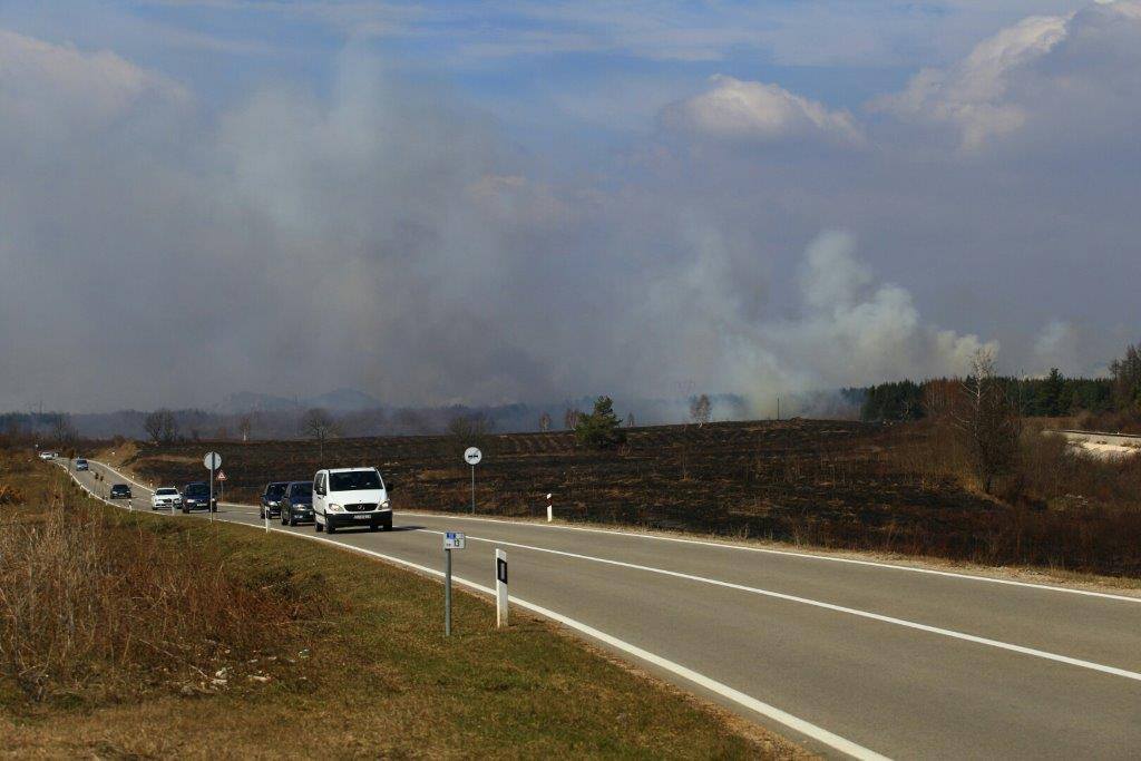 U široj okolici Gospića i na većem području Ličko-senjske županije bukte požari na otvorenome. Vatrogasne postrojbe su danonoćno na terenu. Očito je nepažljivo, ali i zlonamjerno paljenje suhe trave i korova poprimilo alarmantne razmjere. Nakon što je u dva navrata zbog gustog dima bila zatvorena auto-cesta A-1 u predjelu odmorišta Jadova, slično se jučer dogodilo i nedaleko od željezničke pruge kod Ribnika i Metka. Promet nije zatvoren, ali je gusti dim smanjio vidljivost na svega nekoliko metara jer se vatra sasvim približila tračnicama. Osim spomenutih područja danas gori i Medačka plantaža koja je minirana i vatrogascima nepristupačna.