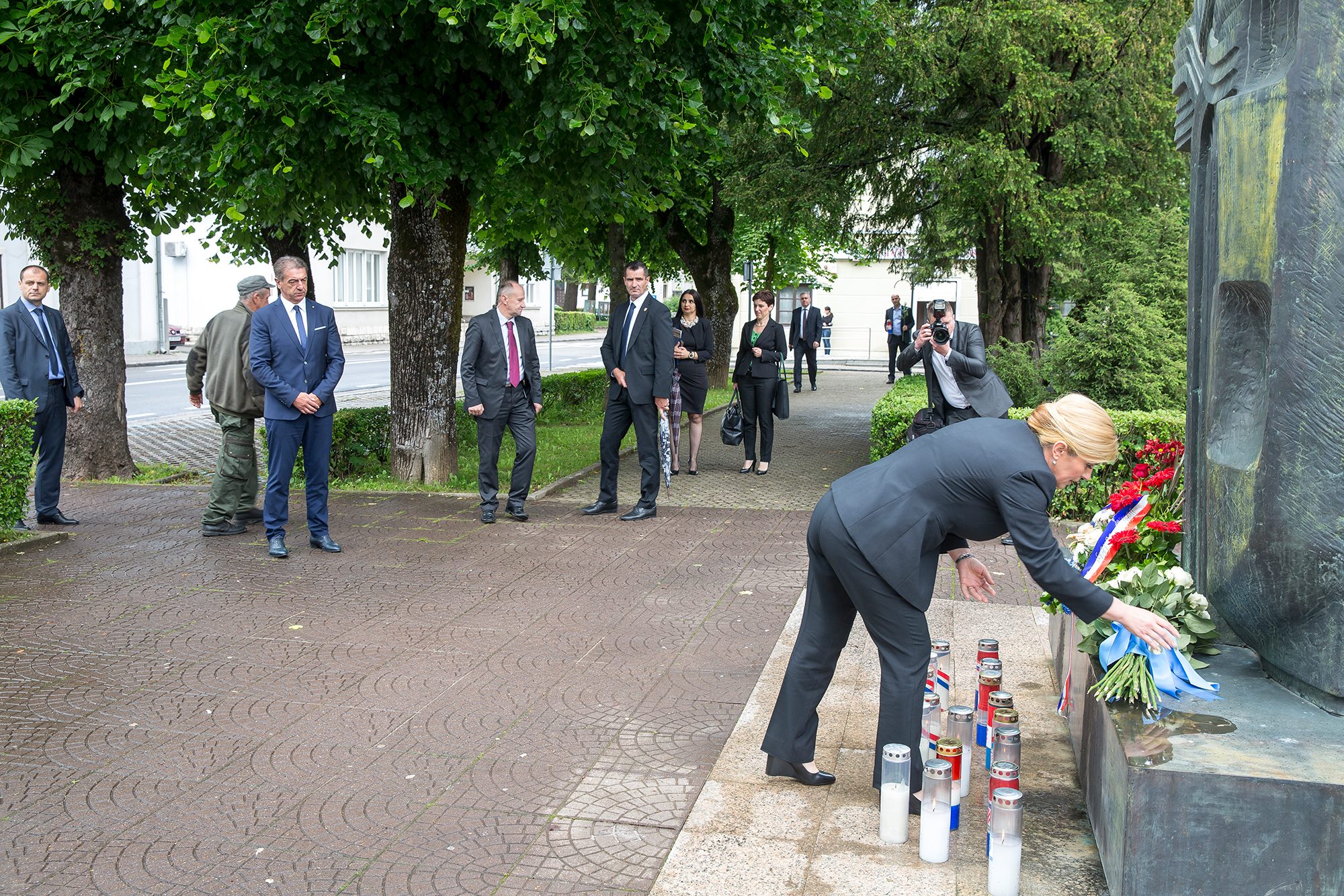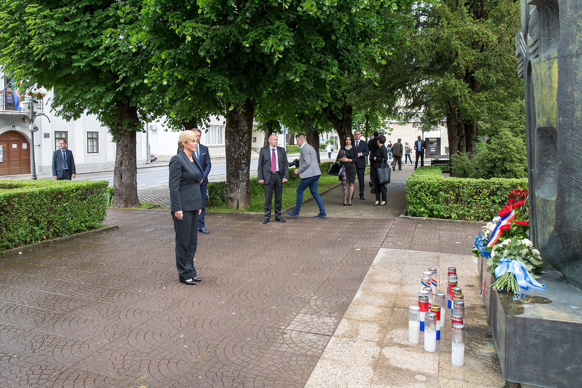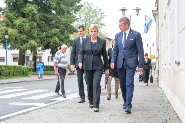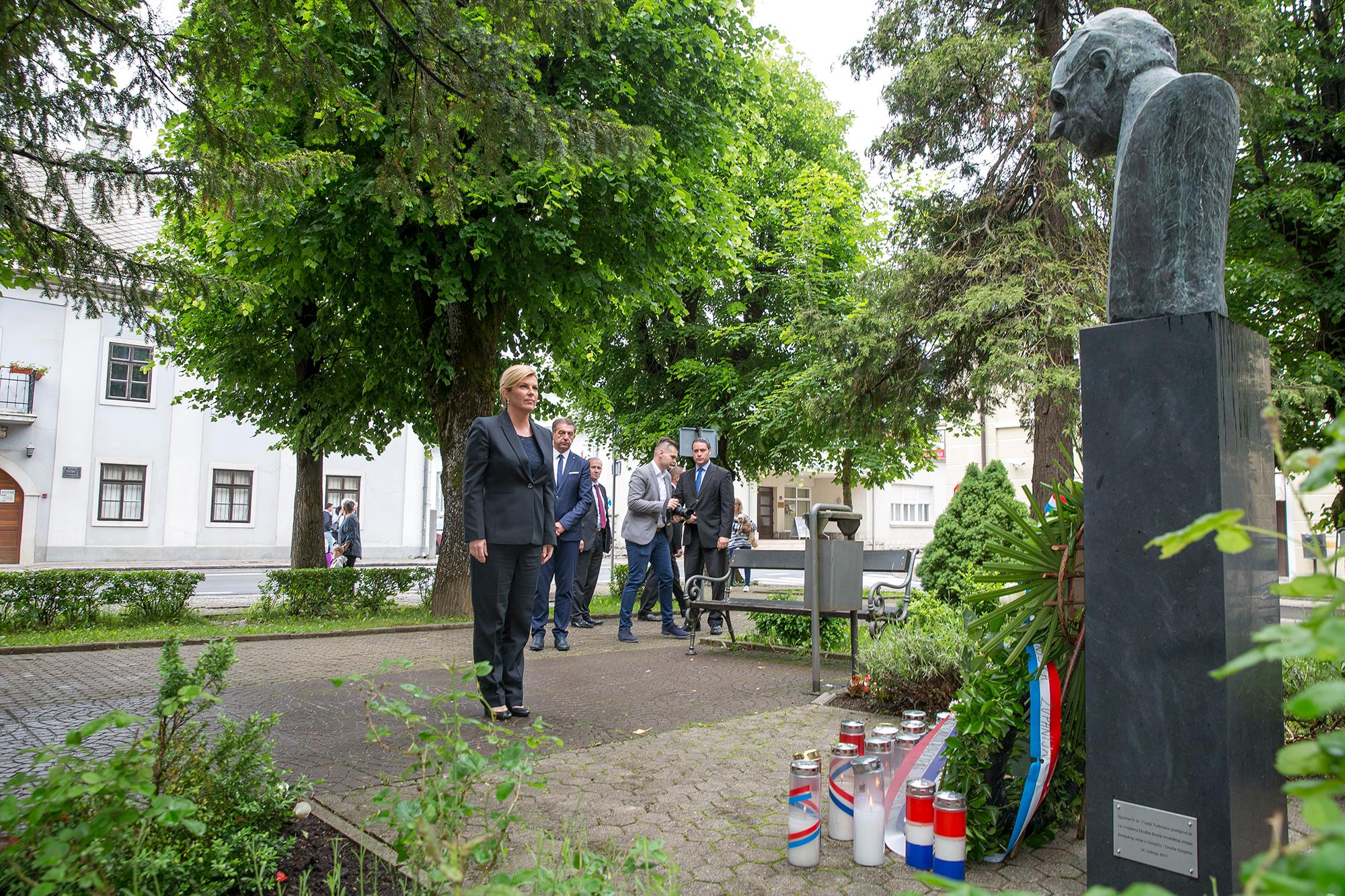 Predsjednica RH Kolinda Grabar-Kitarović na početku svoga posjeta Gospiću u kojem je sudjelovala na svečanoj sjednici Županijske skupštine posjetila je župana Darka Milinovića. Nakon posjeta Kabinetu župana, predsjednica i župan su se uputili do spomenika poginulim braniteljima i spomen-biste prvom hrvatskom predsjedniku dr. Franju Tuđmanu gdje je Grabar-Kitarović položila cvijeće i zapalila svijeću.