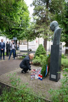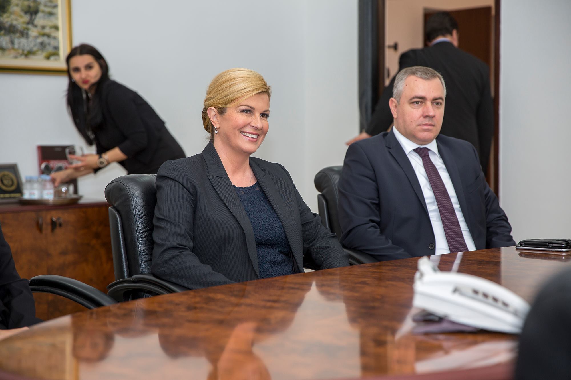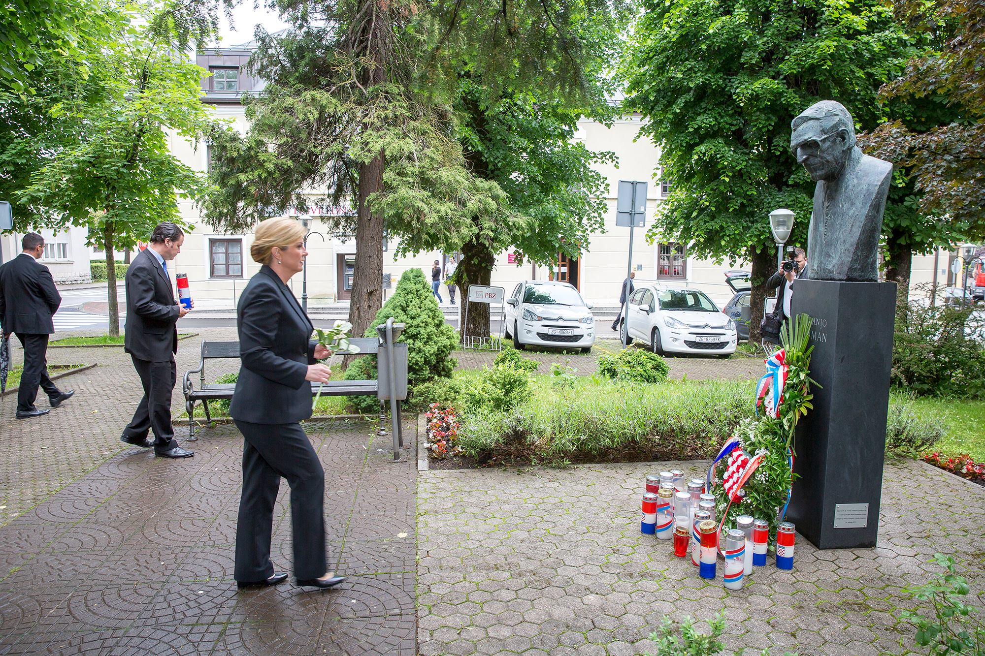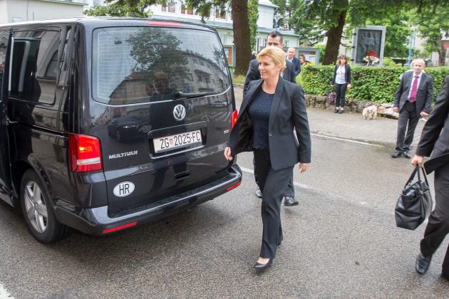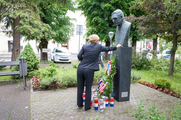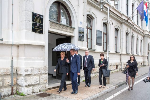 Predsjednica RH Kolinda Grabar-Kitarović na početku svoga posjeta Gospiću u kojem je sudjelovala na svečanoj sjednici Županijske skupštine posjetila je župana Darka Milinovića. Nakon posjeta Kabinetu župana, predsjednica i župan su se uputili do spomenika poginulim braniteljima i spomen-biste prvom hrvatskom predsjedniku dr. Franju Tuđmanu gdje je Grabar-Kitarović položila cvijeće i zapalila svijeću.
