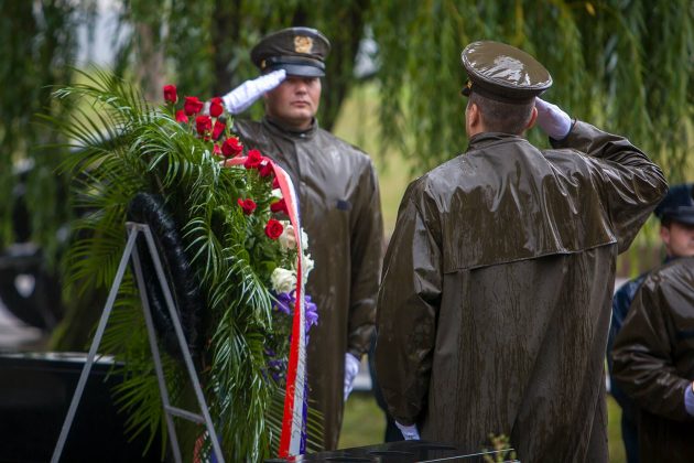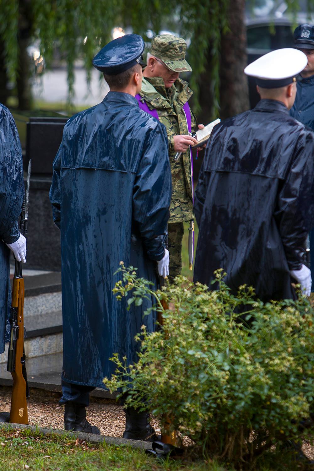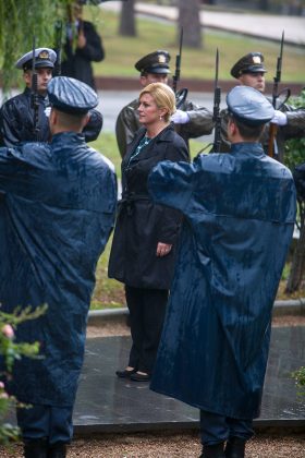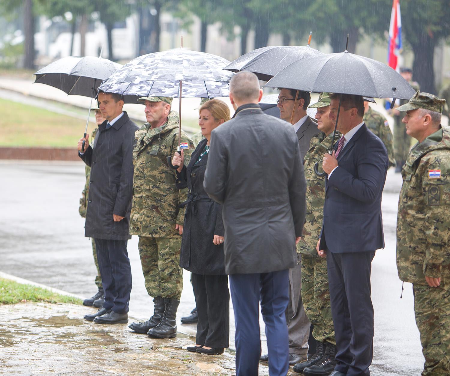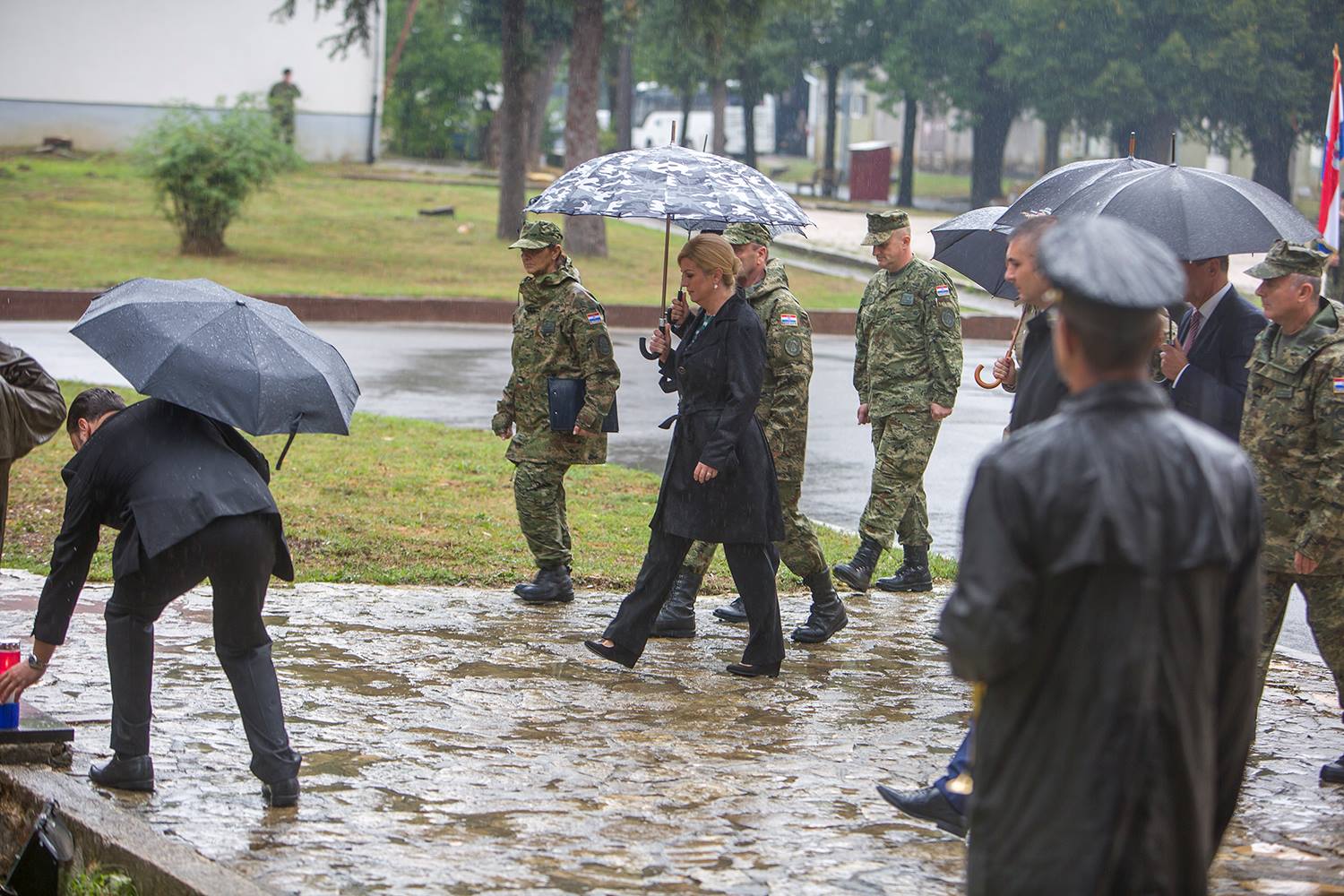 Zadnja etapa boravka predsjednice RH Kolinde Grabar Kitarović u Ličko-senjskoj županiji bila je u znaku komemoracije održane u vojarni „Eugen Kvaternik“ u Gospiću. Uz svečani postroj pripadnika 1. pješačke bojne „Vukovi“, gardijske motorizirane brigade, predsjednica je položila vijenac, zapalila svijeću i poklonila se žrtvama 56 poginulih iz 9. gardijske brigade. Legendarni „Vukovi“ sudjelovali su u svim značajnijim akcijama i operacijama  na širem području Like, na Maslenici, oslobodili su „Medački džep“, zatim u operaciji zauzimanja kota iznad Knina pod nazivom „Ljeto ’95.“, u Oluji… Ova je postrojba tijekom postojanja imala više od 160 ranjenih. Slušajući ove podatke od domaćina predsjednica je još jednom iskazala zahvalnost i svoje divljenje svim hrvatskim braniteljima čija je hrabrost i žrtva  doprinijela ostvarenju sna o slobodnoj Domovini.