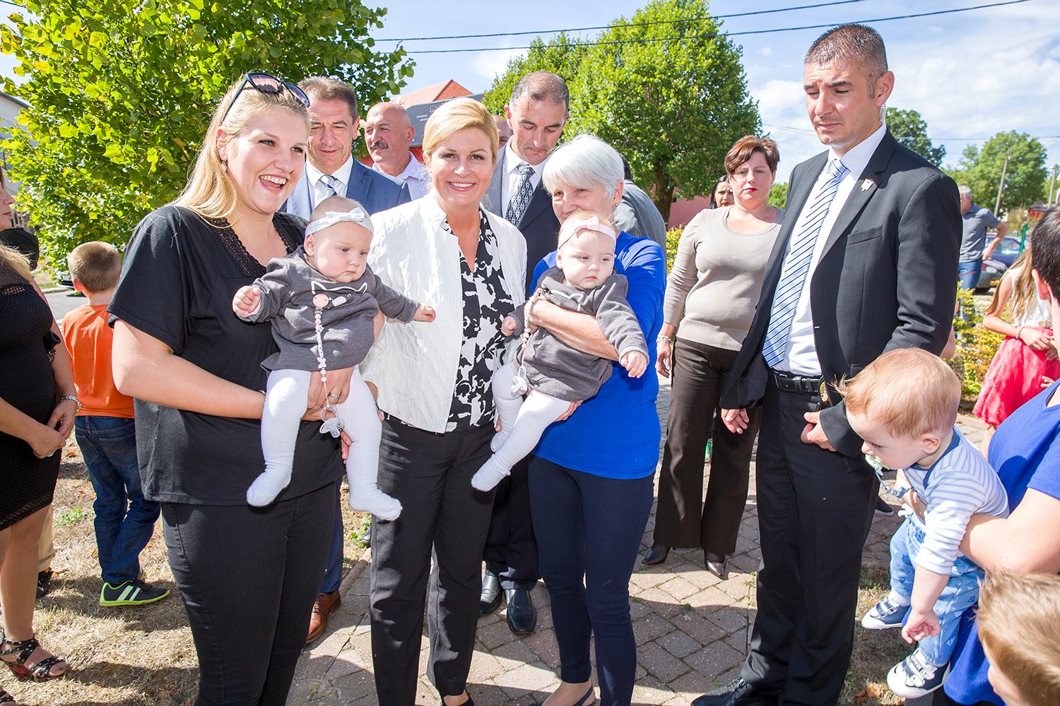 U središtu Lovinca predsjednicu RH Kolindu Grabar Kitarović dočekao je načelnik Općine Lovinac Ivan Miletić s najbližim suradnicima, kao i mnogi mještani koji su se također pridružili dobrodošlici. U zgradi Općine načelnik Miletić u kraćim je crtama oslikao značajke ovog dijela Like koje se bori s mnogim nedaćama, među kojima je izražena depopulacija. Unatoč svemu ovdje raste broj OPG-a, povećava se broj dolazaka turista i Lovinac je zalaganjem tvrtke „Agro-Velebit“ prvi dobio zaštitinu markicu za lički krumpir, proizvod sa zajamčenim zemljopisnim podrijetlom. Predsjednica je potom svjedočila aktivnostima ove tvrtke gdje je  započelo vađenje krumpira. Kao jedan od neiskorištenih resursa spomenuta je mini-rafinerija „Eko-Velebit“, pogon u koji je već uloženo 10 milijuna eura, a na potpuno ekološkoj bazi prerađivalo bi se staro ulje, auto-gume i općenito štetne  tvari koje bi se  pretvaralo u naftu. O ovom problemu referirao je vlasnik tvrtke Ivan Ivančić, na što se predsjednica obvezala kako će odmah po dolasku u Zagreb razložiti ovaj slučaj u resornom ministarstvu da bi se realizirala potrebna dokumentaciju i u pogon stavila mala tvornica sa 30-ak zaposlenih.