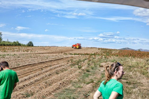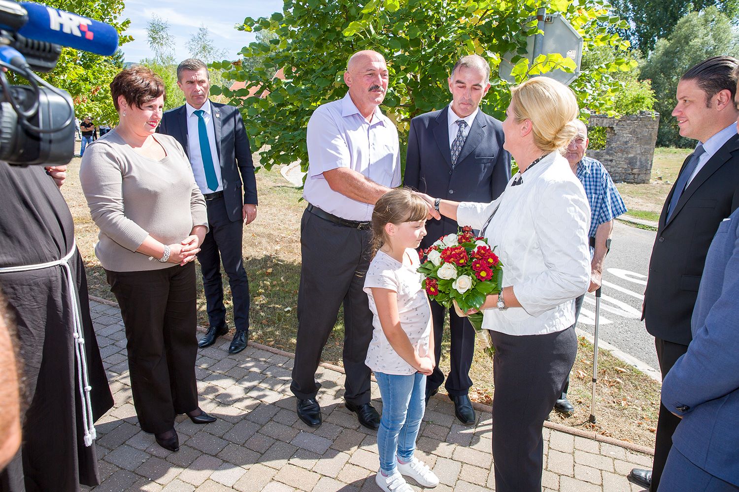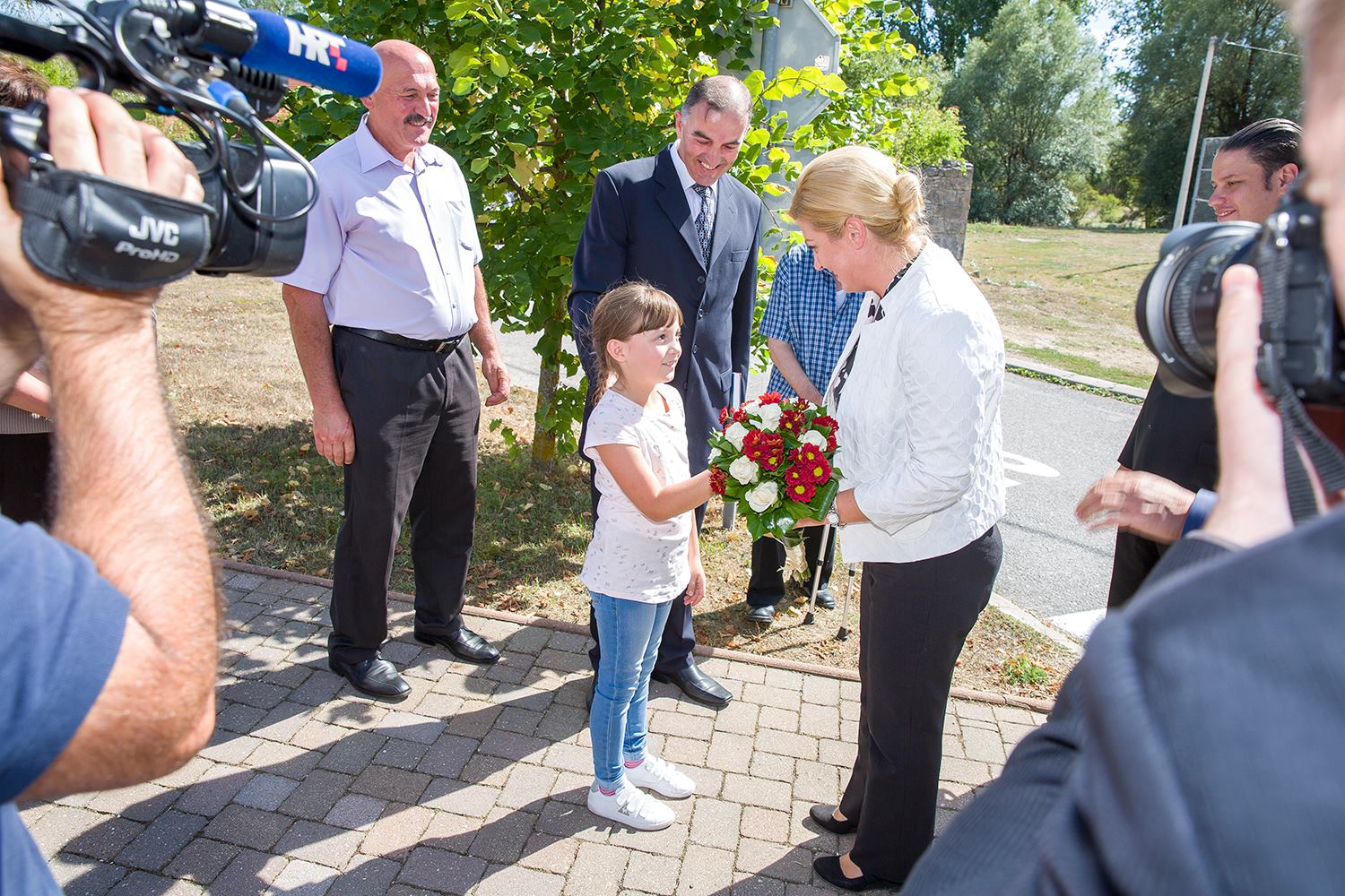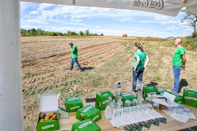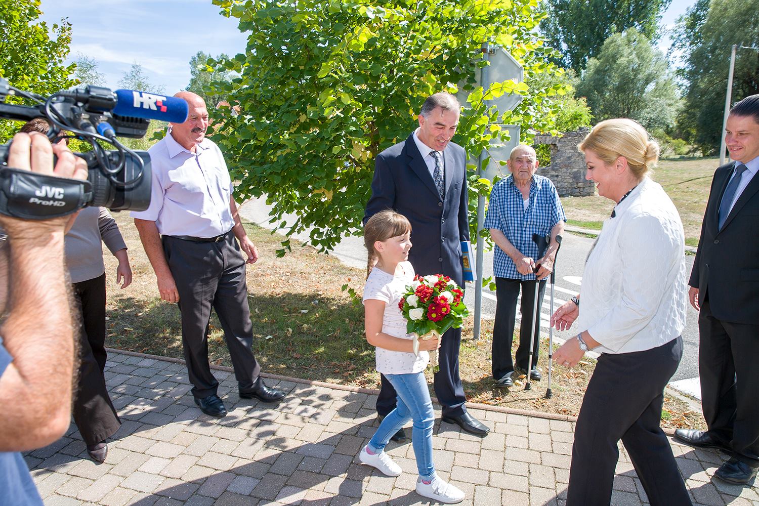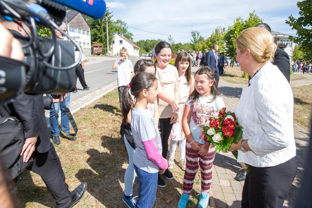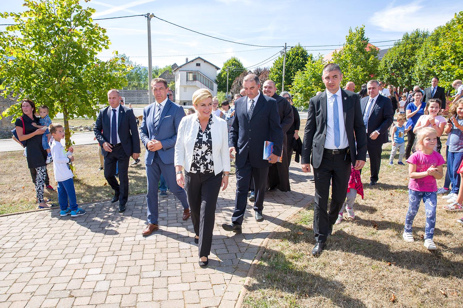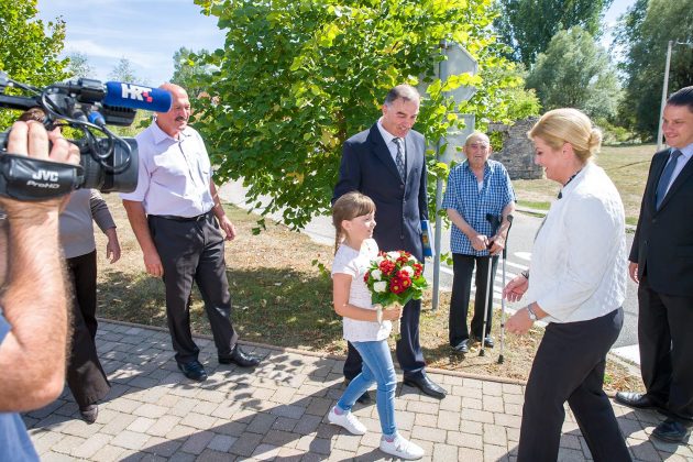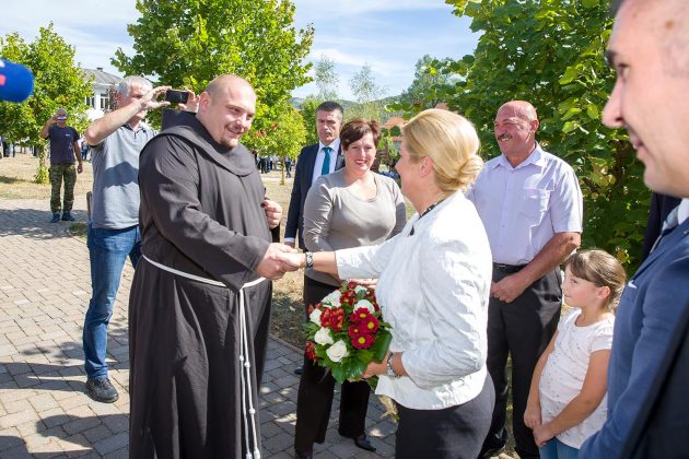 U središtu Lovinca predsjednicu RH Kolindu Grabar Kitarović dočekao je načelnik Općine Lovinac Ivan Miletić s najbližim suradnicima, kao i mnogi mještani koji su se također pridružili dobrodošlici. U zgradi Općine načelnik Miletić u kraćim je crtama oslikao značajke ovog dijela Like koje se bori s mnogim nedaćama, među kojima je izražena depopulacija. Unatoč svemu ovdje raste broj OPG-a, povećava se broj dolazaka turista i Lovinac je zalaganjem tvrtke „Agro-Velebit“ prvi dobio zaštitinu markicu za lički krumpir, proizvod sa zajamčenim zemljopisnim podrijetlom. Predsjednica je potom svjedočila aktivnostima ove tvrtke gdje je  započelo vađenje krumpira. Kao jedan od neiskorištenih resursa spomenuta je mini-rafinerija „Eko-Velebit“, pogon u koji je već uloženo 10 milijuna eura, a na potpuno ekološkoj bazi prerađivalo bi se staro ulje, auto-gume i općenito štetne  tvari koje bi se  pretvaralo u naftu. O ovom problemu referirao je vlasnik tvrtke Ivan Ivančić, na što se predsjednica obvezala kako će odmah po dolasku u Zagreb razložiti ovaj slučaj u resornom ministarstvu da bi se realizirala potrebna dokumentaciju i u pogon stavila mala tvornica sa 30-ak zaposlenih.