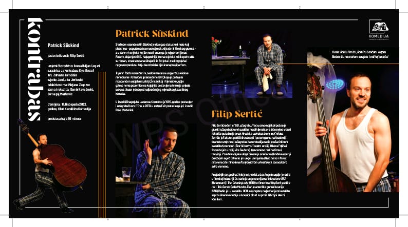 Predstava Kontrabas romantična je komedija slavnog pisca Patricka Suskinda (autora Parfema po kojem je snimljen Hollywoodski film). Radi se o svjetskoj uspješnici, a ništa slabije nije prošla ni u Zagrebu u produkciji Kazališta Komedija i izvedbi Filipa Sertića. Publika i kritika dijele oduševljenje te je svaka izvedba dosad bila rasprodana.