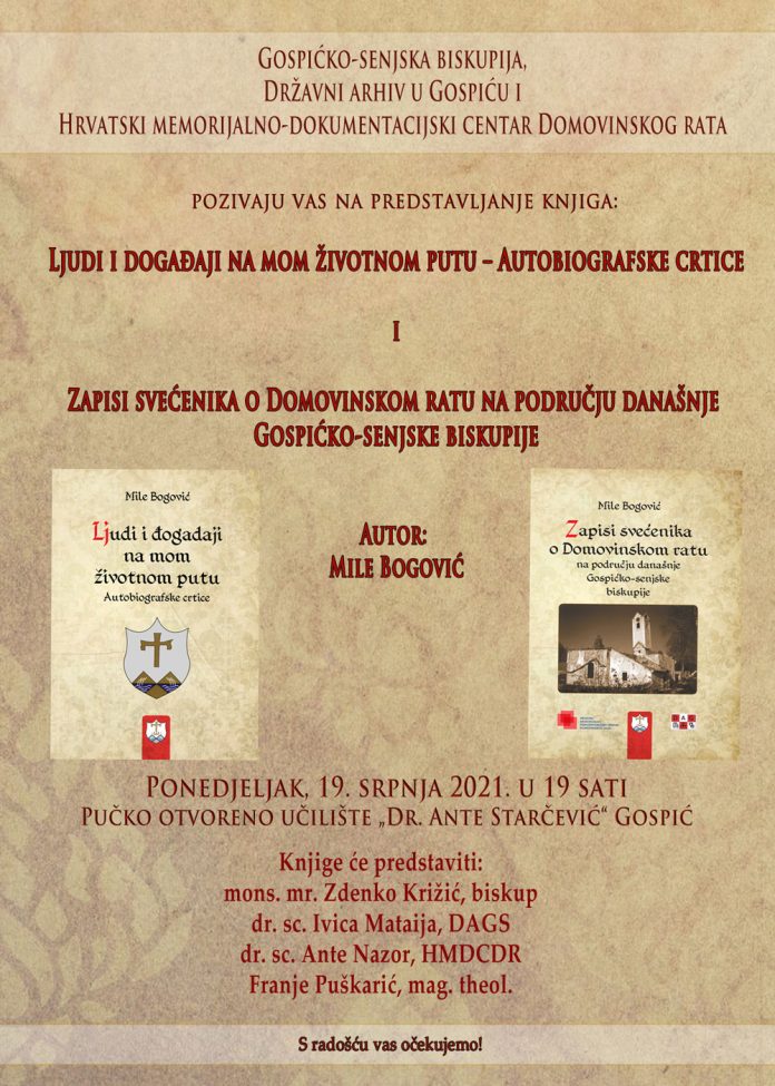 Home Gospić Predstavljanje knjiga autora Mile Bogovića GospićKulturavijesti Predstavljanje knjiga autora Mile Bogovića By Nikola Mraović - 18 srpnja, 2021 0 Facebook Gs Press RELATED ARTICLESMORE FROM AUTHOR Troskot traži očitovanje Grada Gospića o zaprimanju otpada Potpisani ugovori vrijedni 314.000 eura: gotovo 50 % više sredstava za operativne službe i turizam 36-godišnjak i 32-godišnjakinja iz Gospića mjesecima prodavali kokain i marihuanu