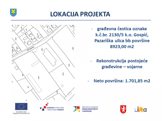 Novi projekt realizirat će se u Pazariškoj ulici u Gospiću, na prostoru bivšeg skladišta JNA kojega je Grad Gospić dobio na korištenje prije desetak godina. Kako je naglašeno tijekom prezentacije sve usluge ovog centra bit će besplatne pa je župan pozvao sve općine i gradove da se uključe u ovaj projekt. Prema zacrtanoj dinamici  Razvojni centar Ličko-senjske županije realizirat će se do 2020. godine, a uz sve beneficije, pomoć i usluge poduzetnicima značit će i otvaranje novih radnih mjesta. Suradnici na znanstvenom planu ovoga projekta  su Veleučilište „Nikola Tesla“ iz Gospića i Prehrambeno-biološki fakultet iz Zagreba.