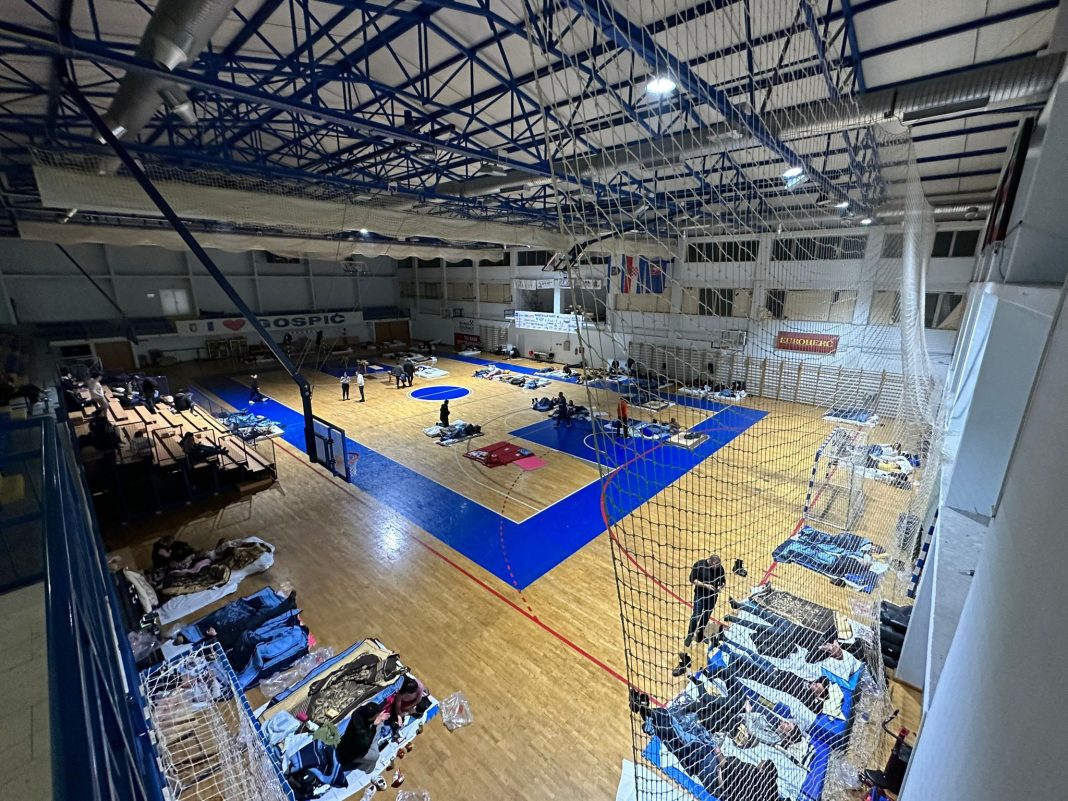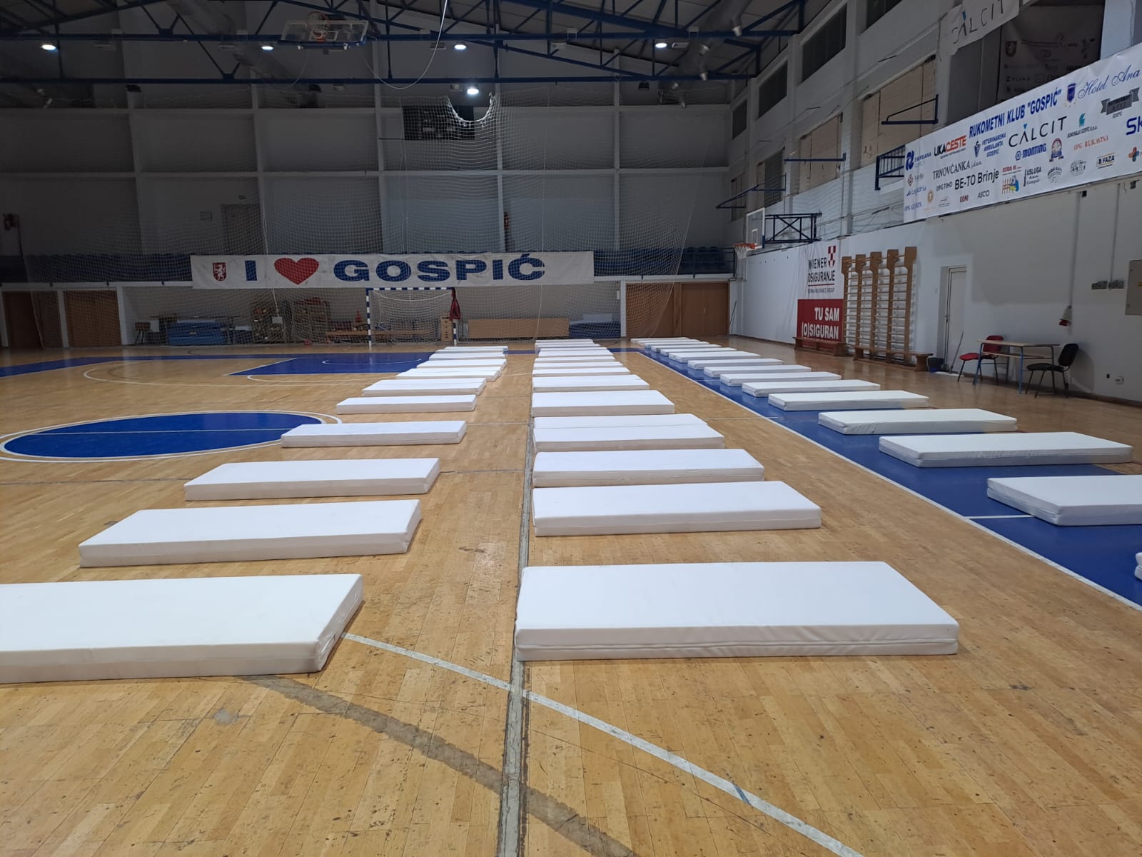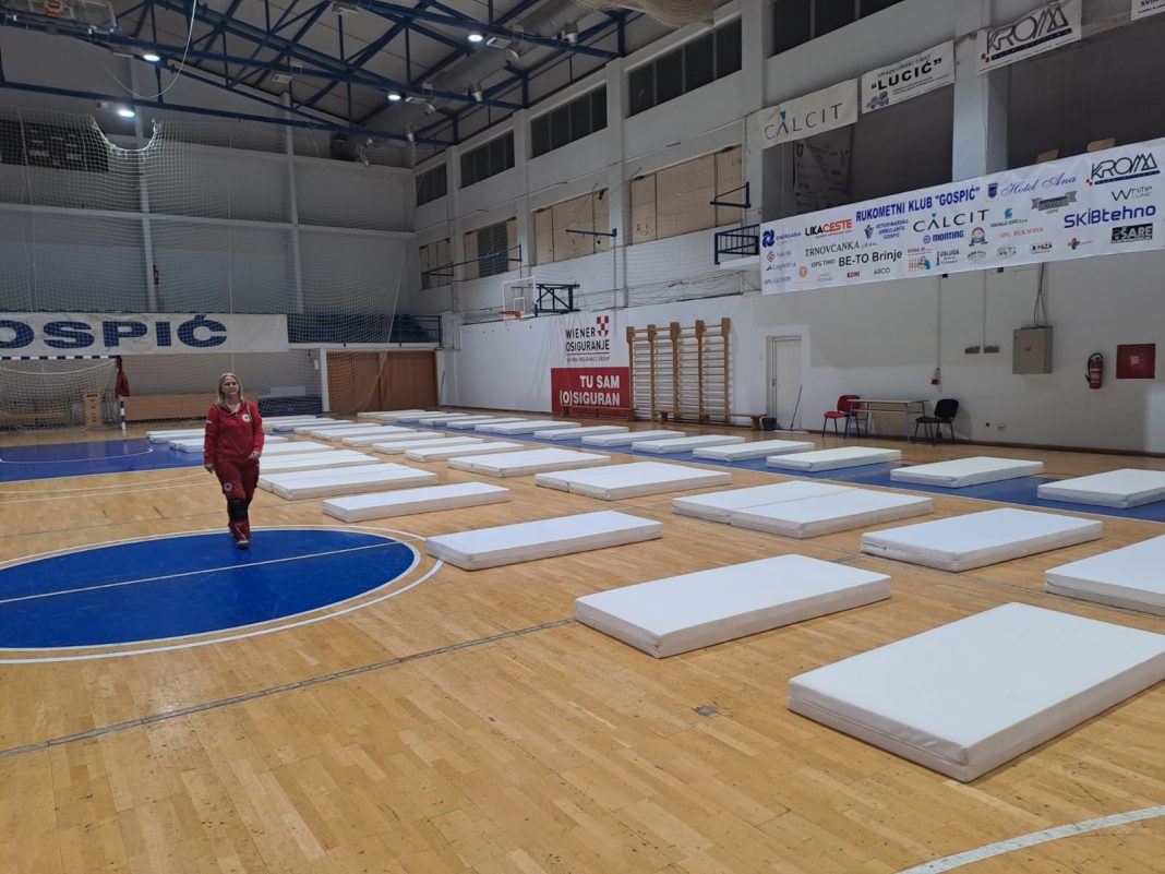 Dvorana je već popunjena s oko 150 ljudi, a još se očekuje dolazak novih. Voditelj prihvatnog centra Joso Živković dočekao je putnike koji su zaglavili na prometnicama u okolici Like. Na terenu su pripadnici Ravnateljstva civilne zaštite i volonteri Crvenog križa.