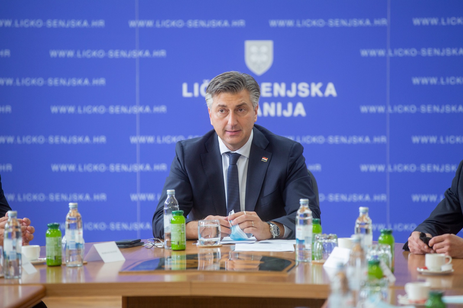 Odmah po dolasku u Gospić, predsjednik Vlade sastao se s ličko-senjskim županom Ernestom Petryjem, predsjednikom Županijske skupštine Marijanom Kustićem, gradonačelnicima i načelnicima općina.