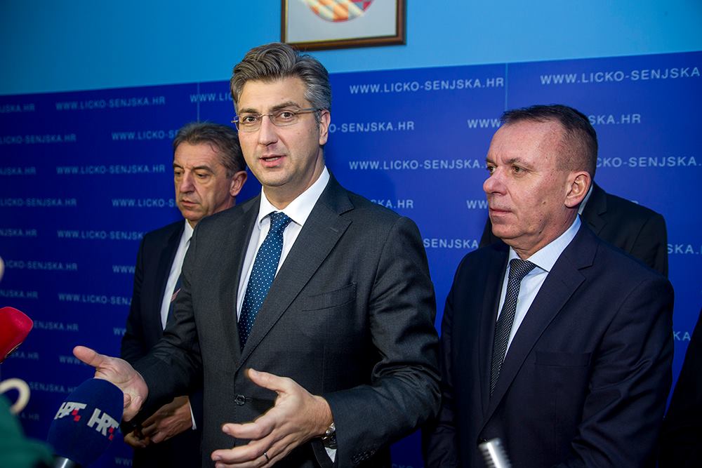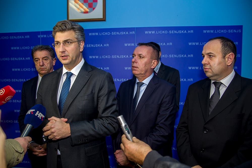 Danas se u Gospiću sastao sa županom Ličko-senjske županije Milanom Kolićem i saborskim zastupnikom i predsjednikom Županijske skupštine Darkom Milinovićem, zamjenikom župana Sanjinom Rukavinom i zamjenikom gradonačelnika Grada Gospića Ivanom Biljanom. Nakon održanog sastanka održana je konferencija za novinare. Premijer Plenković je izrazio zadovoljstvo kako je u sklopu ove turneje posjetio najveću, ali na žalost najslabije naseljenu hrvatsku županiju. Na ovaj je način premijer Plenković osporio spekulacije pojedinih medija „o iznenadnom posjetu Gospiću“.