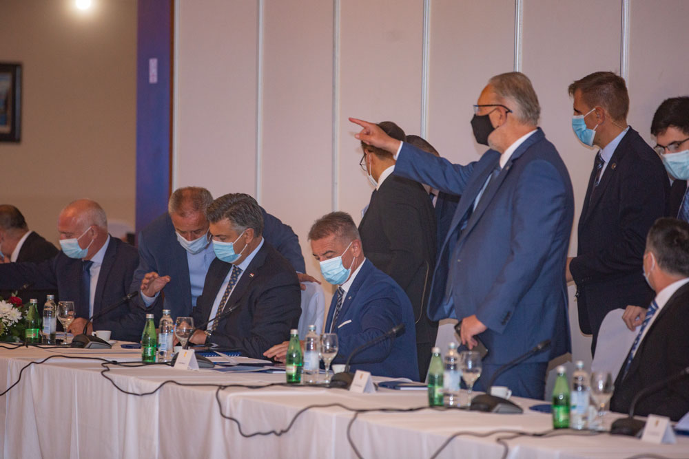 Nakon završetka sastanka premijer Plenković, nekolicina nazočnih ministara i župana obratili su se novinarima. Premijer je istaknuo kako je Ličko-senjska županija unatoč poteškoćama zbog korone ostvarila pozitivne pomake u svako smislu. Govoreći o aktualnoj aferi oko JANAF-a, nekih saborskih zastupnika i gradonačelnika premijer je ponovio činjenicu kako kriminalne radnje, ukoliko su se uopće dogodile, nemaju stranačku boju.