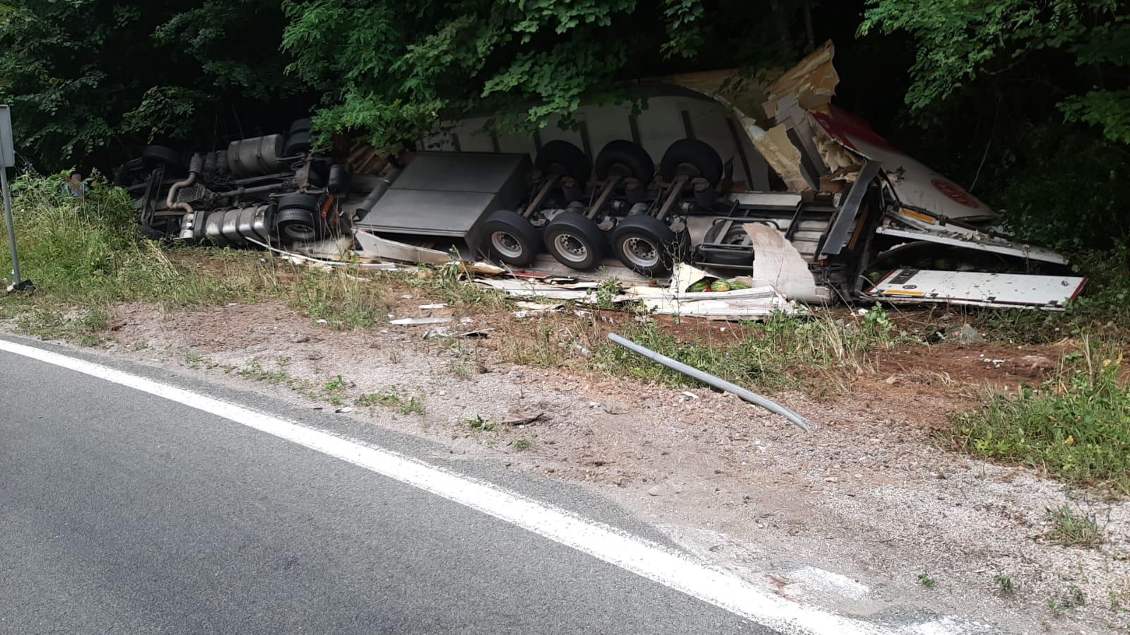 Jutros oko 06:00 sati u Ličkom Petrovom Selu dogodila se prometna nesreća. Vozač kamiona križevačkih registarskih oznaka iz za sada nepoznatih razloga sletio je sa ceste i prevrnuo se.