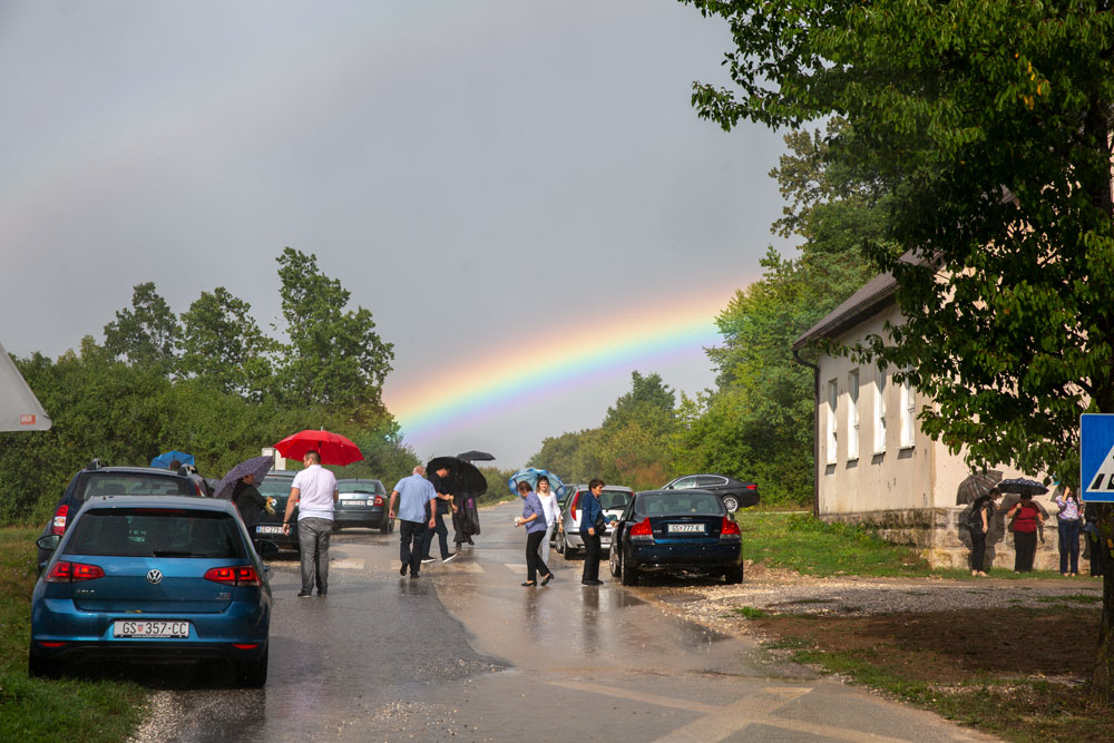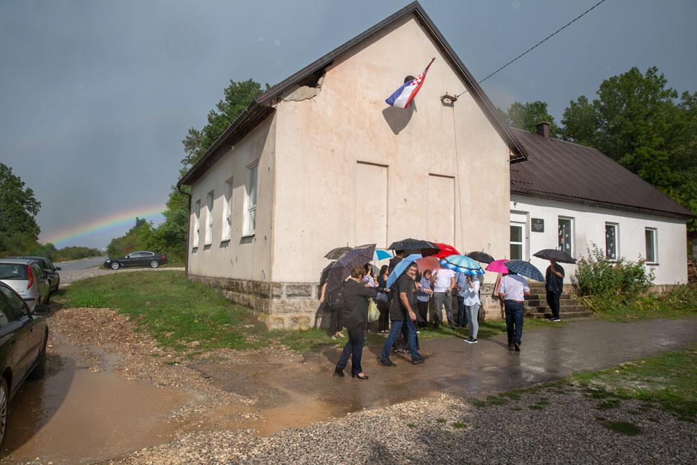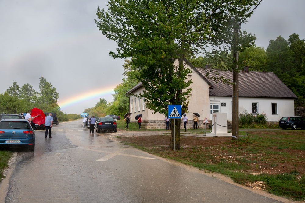 Zbog loših vremenskih uvjeta o. Domagoj Jelača, novi bilajski župnik, svetu misu predvodio je u crkvi sv. Jakova, umjesto u kapelici-špilji sv. Stjepana.