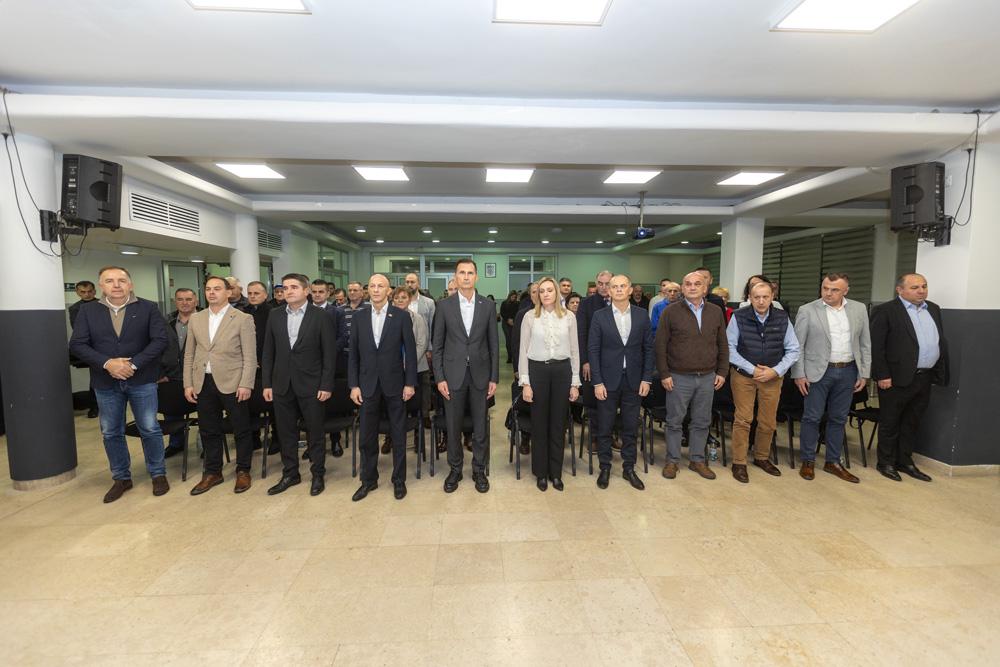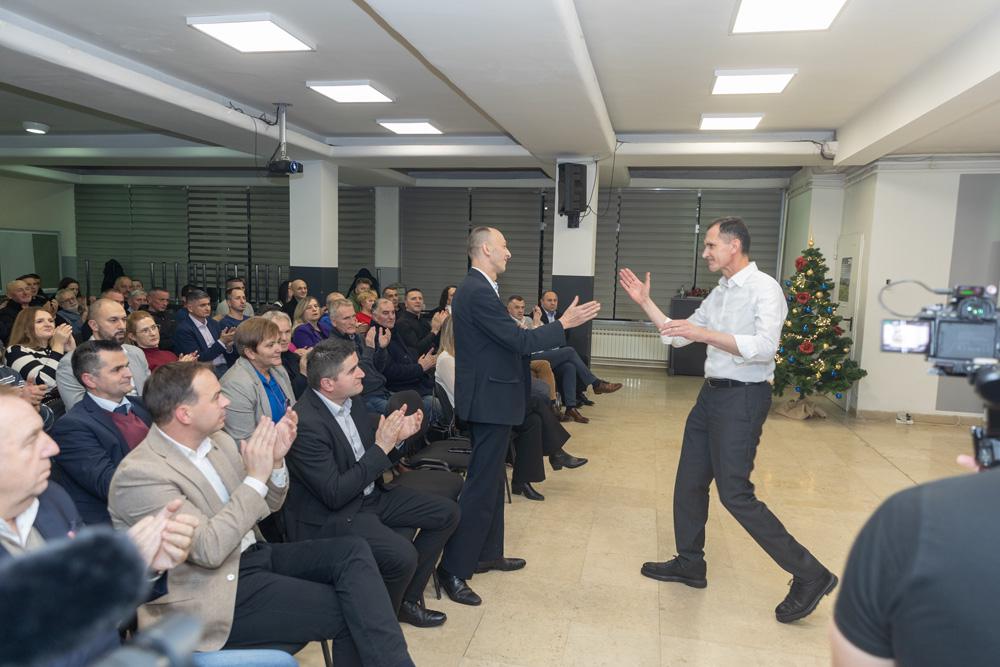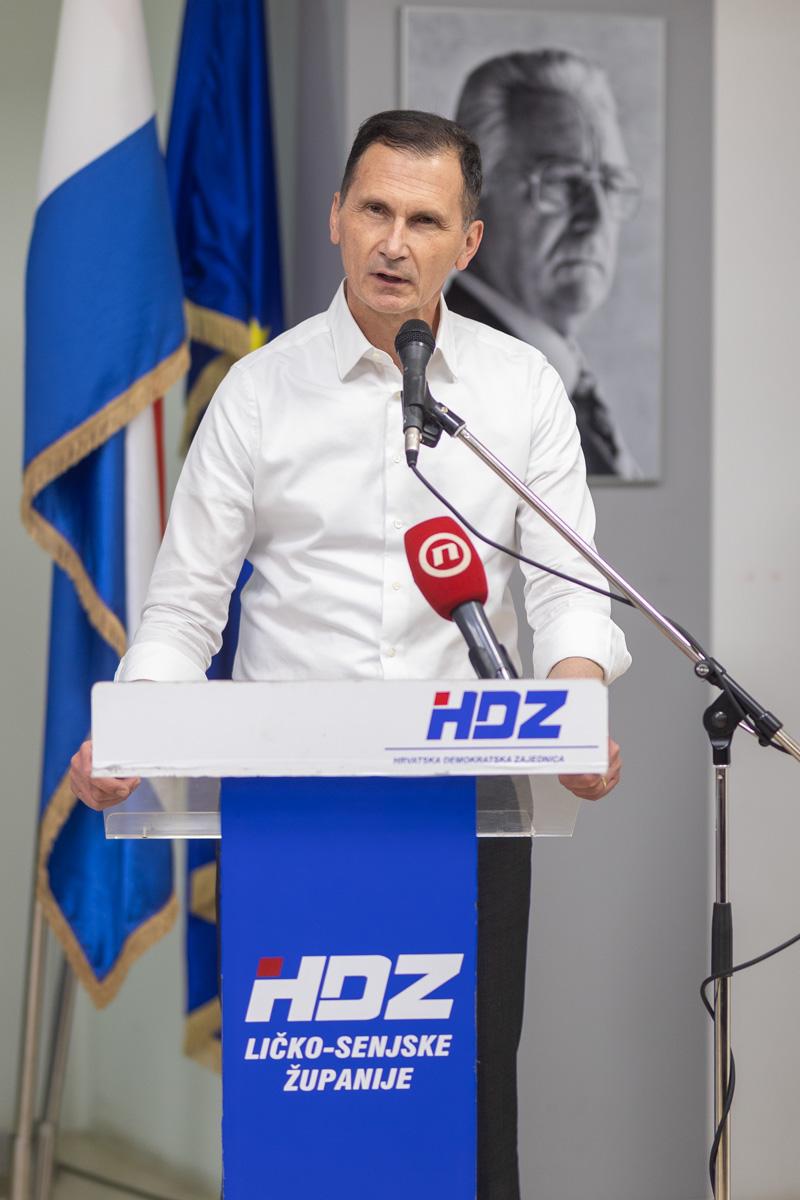 Domaćin, ličko-senjski župan i predsjednik Županijskog odbora HDZ-a Ernest Petry, uputio je srdačne riječi dobrodošlice. “Čast nam je što u ime Županijske organizacije HDZ-a, u našem herojskom Gospiću, možemo pozdraviti budućeg predsjednika Republike Hrvatske Dragana Primorca. Naš dogovor je da, kada postane predsjednik, jedan od prvih posjeta bude upravo našoj županiji. Još jednom mogu kazati da će lički sokol preletjeti Velebit i Jadransko more i donijeti pobjedu HDZ-u i Draganu Primorcu u Zagreb,” kazao je Petry, uz ovacije prisutnih.