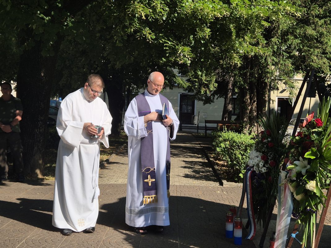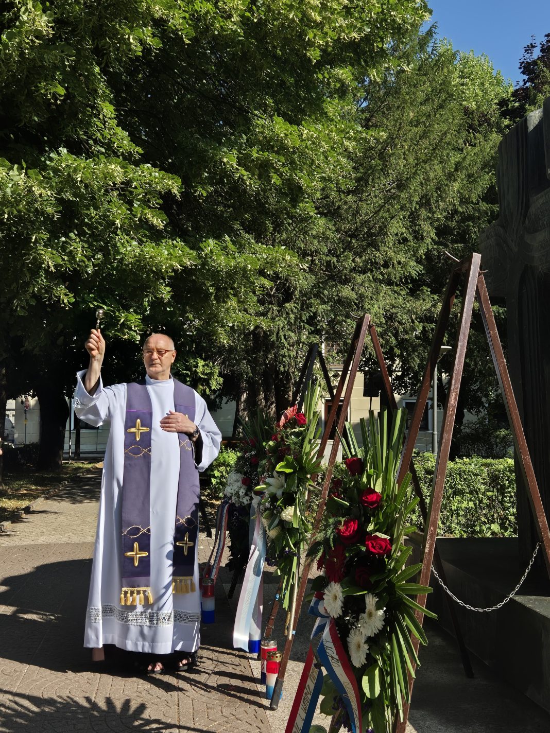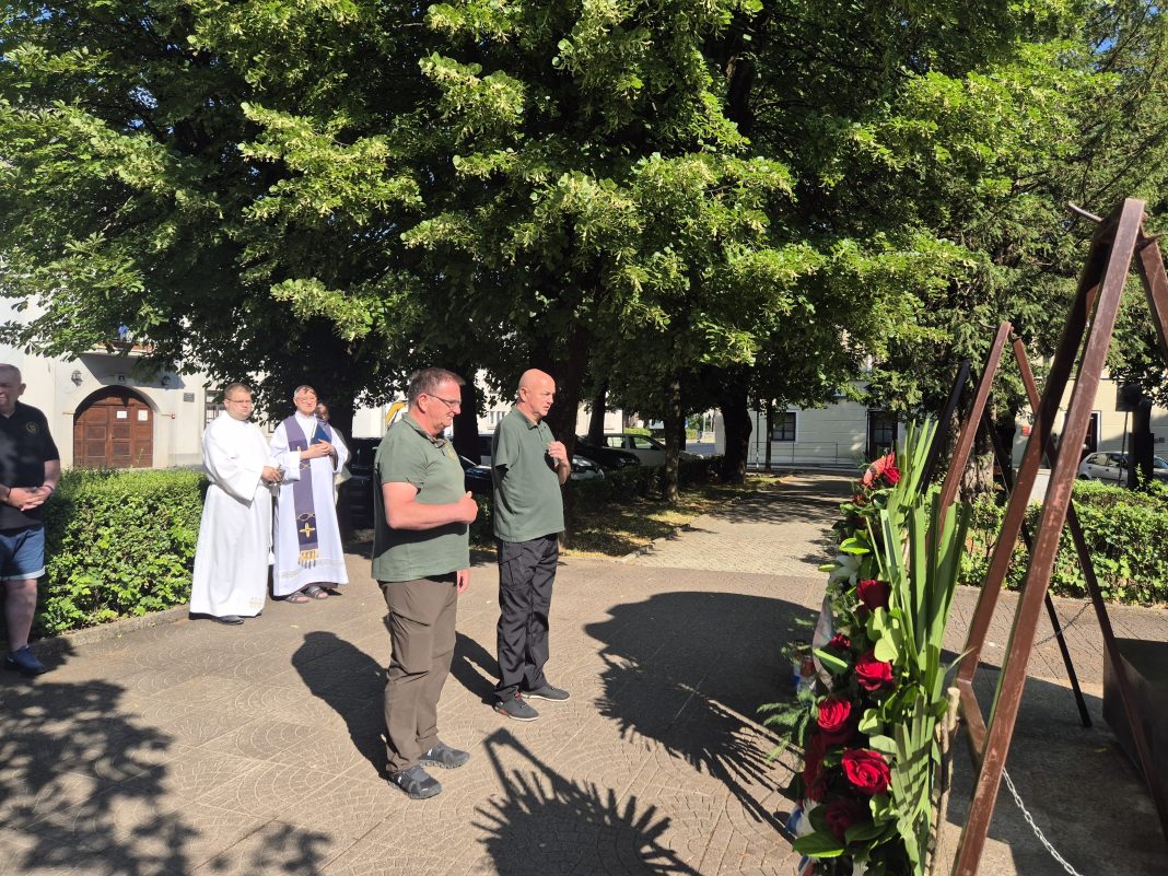 Nakon mise, okupljeni su odali počast polaganjem vijenaca i paljenjem svijeća kod spomenika hrvatskim braniteljima ispred katedrale, dok je blagoslov i riječi molitve uputio također o. Anto Knežević