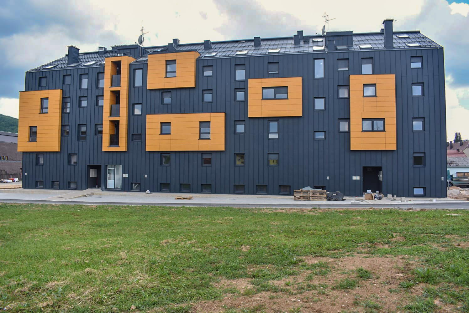 U novoj zgradi, koja se prostire na mjestu stare ekonomske škole, nalazi se 28 stanova predviđenih za stanovnike čije su nekretnine obuhvaćene projektom, a koji ne ostvaruju pravo na adekvatnu naknadu ili je ona manja od 75.000 eura. Ukupno 25 stanova, različitih veličina i struktura, bit će dodijeljeno prema specifičnim uvjetima i kriterijima, uključujući veličinu domaćinstva i socijalni status.
