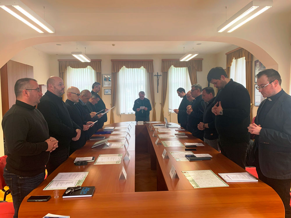Nakon biskupovog pozdrava, kancelar preč. Mišel Grgurić pročitao je zapisnik s prošle sjednice Prezbiterskog vijeća koja je održana u rujnu prošle godine.