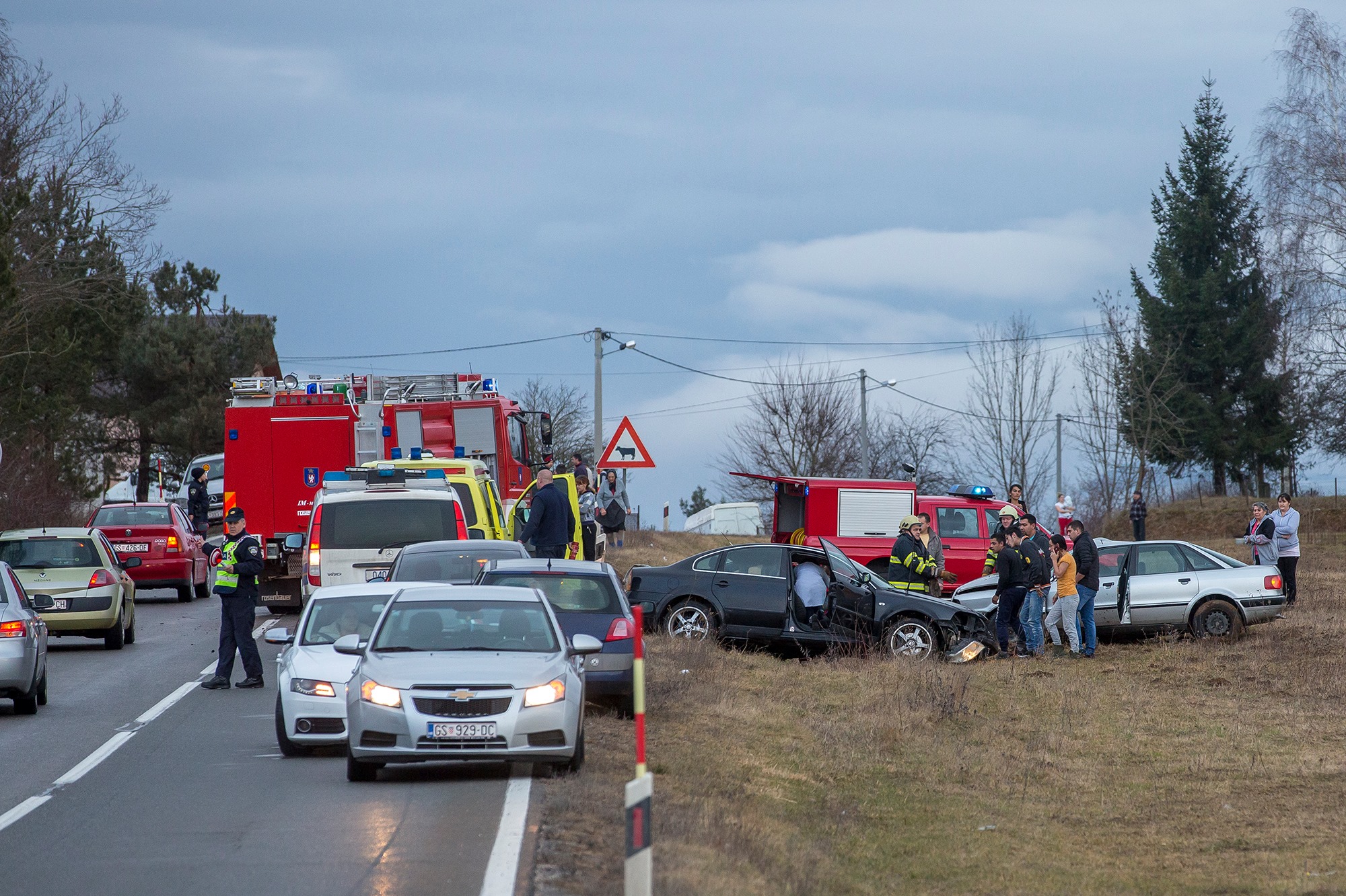 Na državnoj cesti od Gospića u smjeru Gračaca, na dionici Visoko Brdo kod Bilaja dogodila se danas oko 16 sati prometna nesreća. Očevid je još u tijeku pa ne znamo detalje, osim da su u prometnoj nesreći sudjelovala dva automobila gospićkih registracijskih oznaka. Sudarili su se crni WV passat i sivi Audi, a o silini sudara govori podatak da su oba vozila nakon sudara sletjela u polje. Očevici su dočarali brzinu kretanja passata riječima kako je jurio „tristo na sat“. Vozaču su u nesreći bile priklještene obje noge pa su pripadnici JVP Gospić prilikom izvlačenja unesrećenog morali posebnim škarama rezati lim da ga oslobode. Oba vozača su hitno prevezena u Opću bolnicu Gospić.