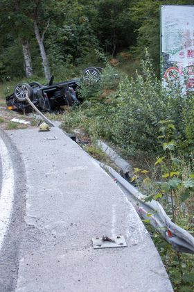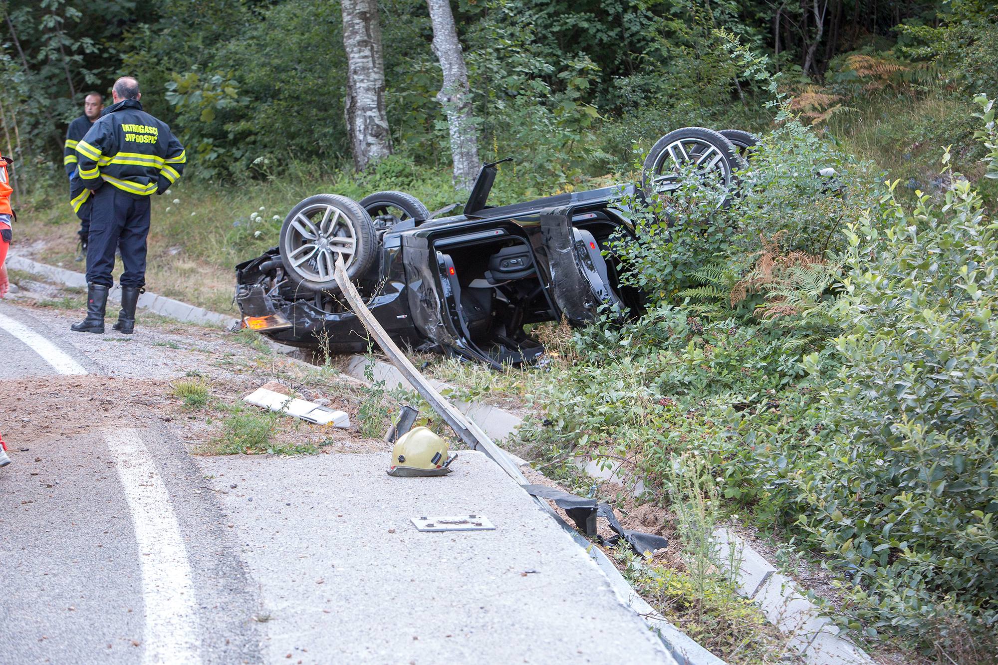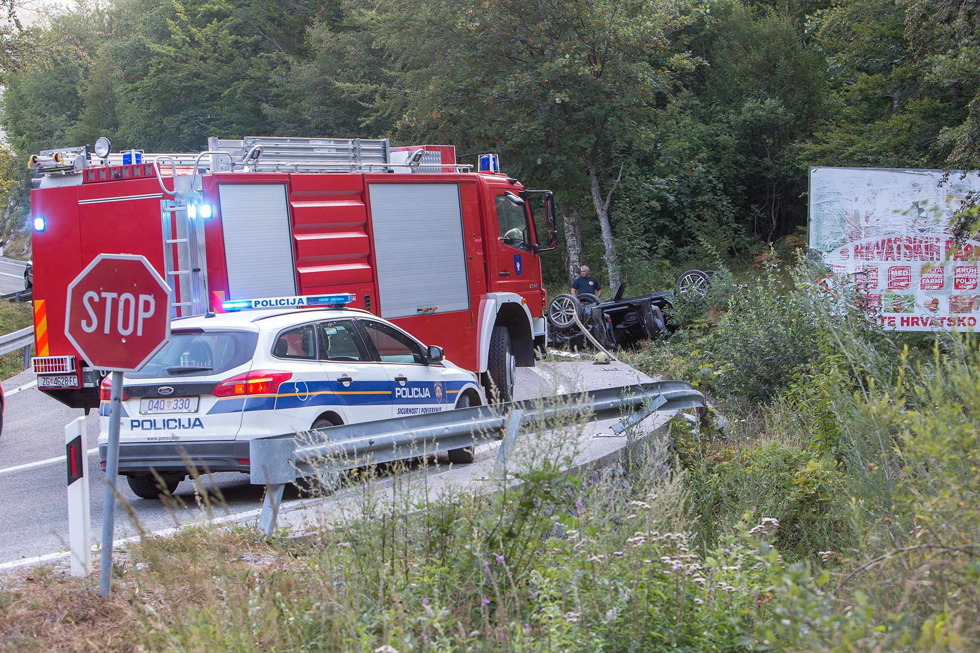 Vozilo Audi Q5 talijanskih reg. oznaka iz smjera Brušana prema Oštarijama je iz zasad nepoznatog razloga izgubio kontrolu i u lijevom zavoju u Takalicama probilo zaštitnu ogradu nakon čega se prevrnuo i završio u jarku.