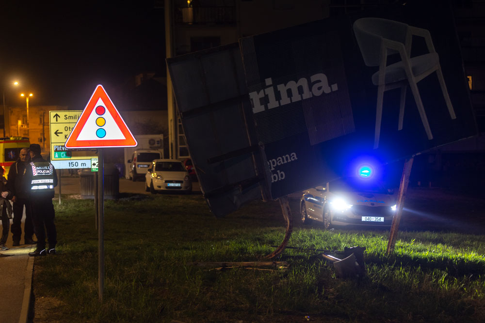 Vozač se od sigurnog pada u hladnu rijeku spasio nakon zabijanja u reklamni pano. Hitna pomoć je odmah stigla na mjesto nesreće te su vozača prevezli u bolnicu radi daljnje medicinske skrbi.
