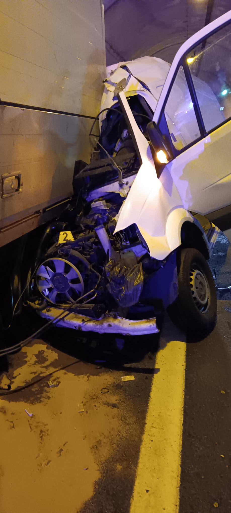 Večeras oko 20:00 sati na autocesti A-1, u tunelu Grič, u smjeru Splita dogodila se prometna nesreća u kojoj se kombi gospićkih registracijski oznaka zabio u kamion.