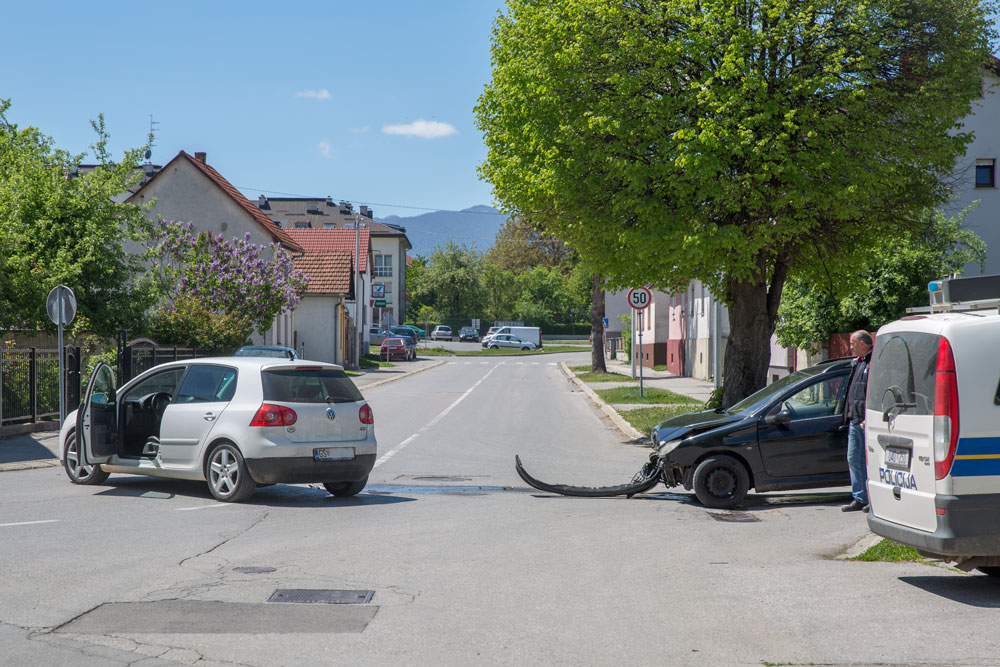 Na križanju Ulice Smiljanska i Bužimska (kod PM-a) u Gospiću se oko 12:00 dogodila prometna nesreća u kojoj su sudjelovali automobili Golf i Peugeot 206W, oboje gospićke registracijske oznake.