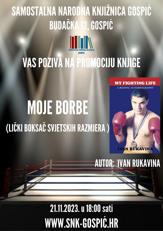 Samostalna narodna knjižnica Gospić će biti domaćin promocije knjige “Moje borbe”, autobiografije poznatog ličkog boksača Ivana Rukavine. Promocija će se održati večeras u 18 sati, u prostorijama knjižnice u Budačkoj 12.