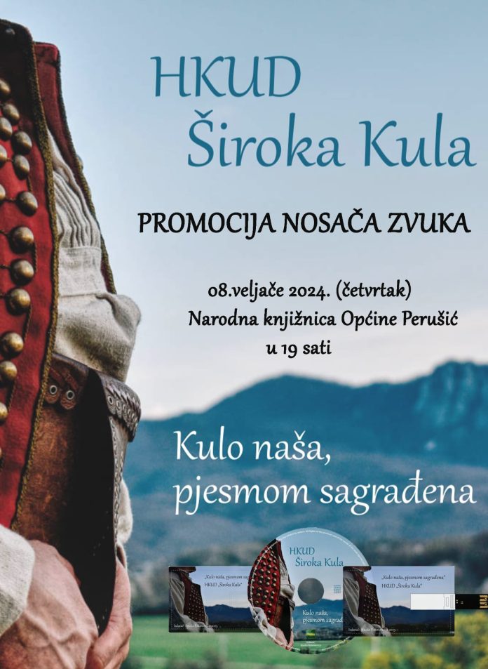Svi ljubitelji tradicije u Perušiću i okolici ovog će četvrtka, 8. veljače 2024. godine, imati priliku uživati u predstavljanju novog nosača zvuka vrijednih folkloraša, entuzijasta i zaljubljenika u hrvatsku tradiciju HKUD-a Široka Kula.