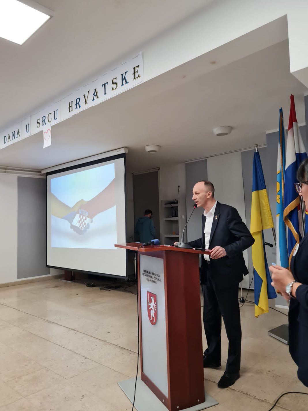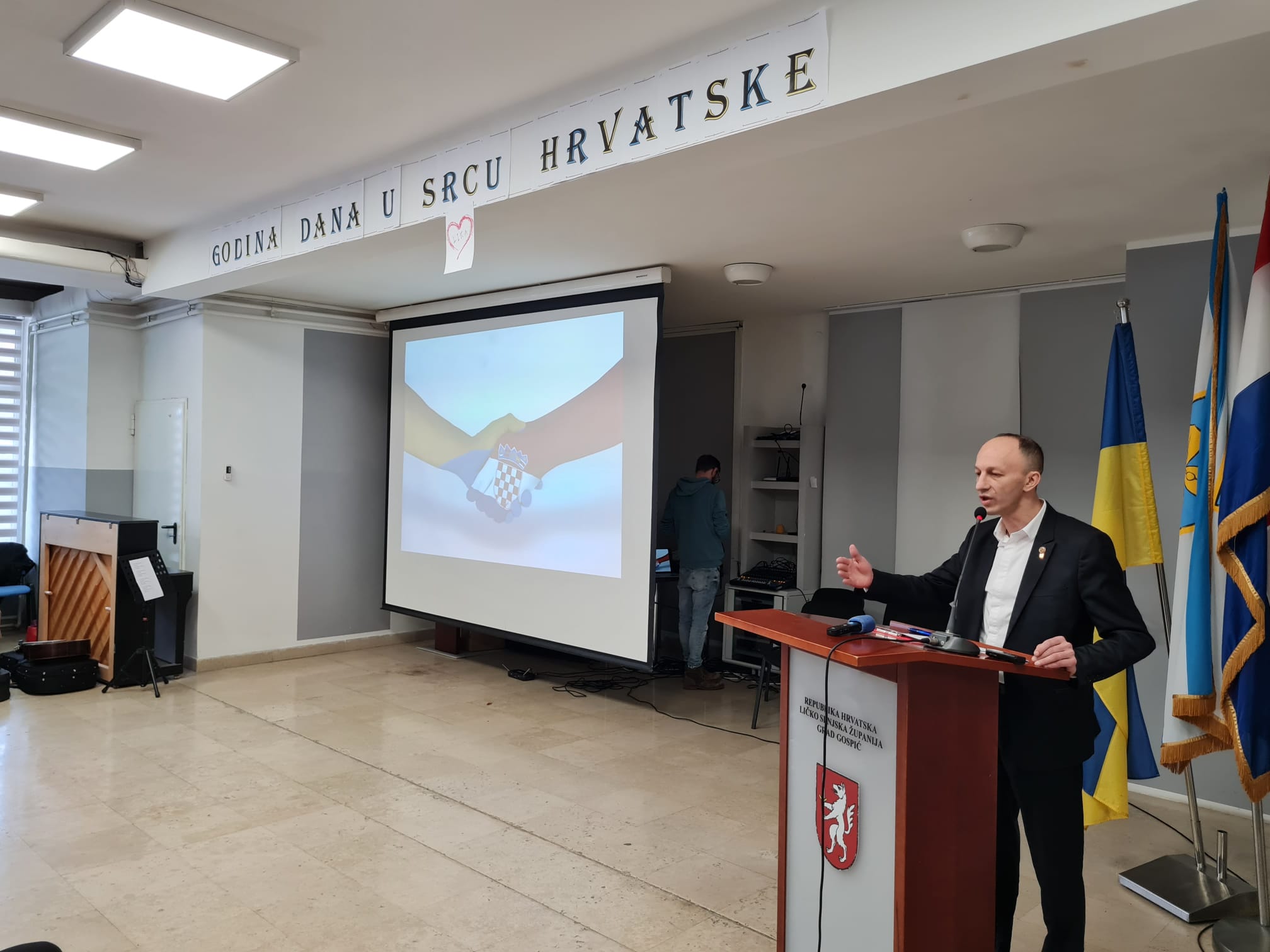 Prošloga ljeta su djeca ukrajinskih branitelja bila na ljetovanju u našem primorskom i otočnom dijelu. U suradnji s Vladama dvaju zemalja iz ličkih skladišta streljiva i oružja slala se pomoć Ukrajini. Kada se taj agresorski rat jednom okonča vi ćete moći ostati kod nas dok god se ne stvore uvjeti za vaš smještaj u Domovini. Zato naglašavam „živjela Hrvatska-slava Ukrajini!-pozdravio je nazočne župan Ernest Petry.