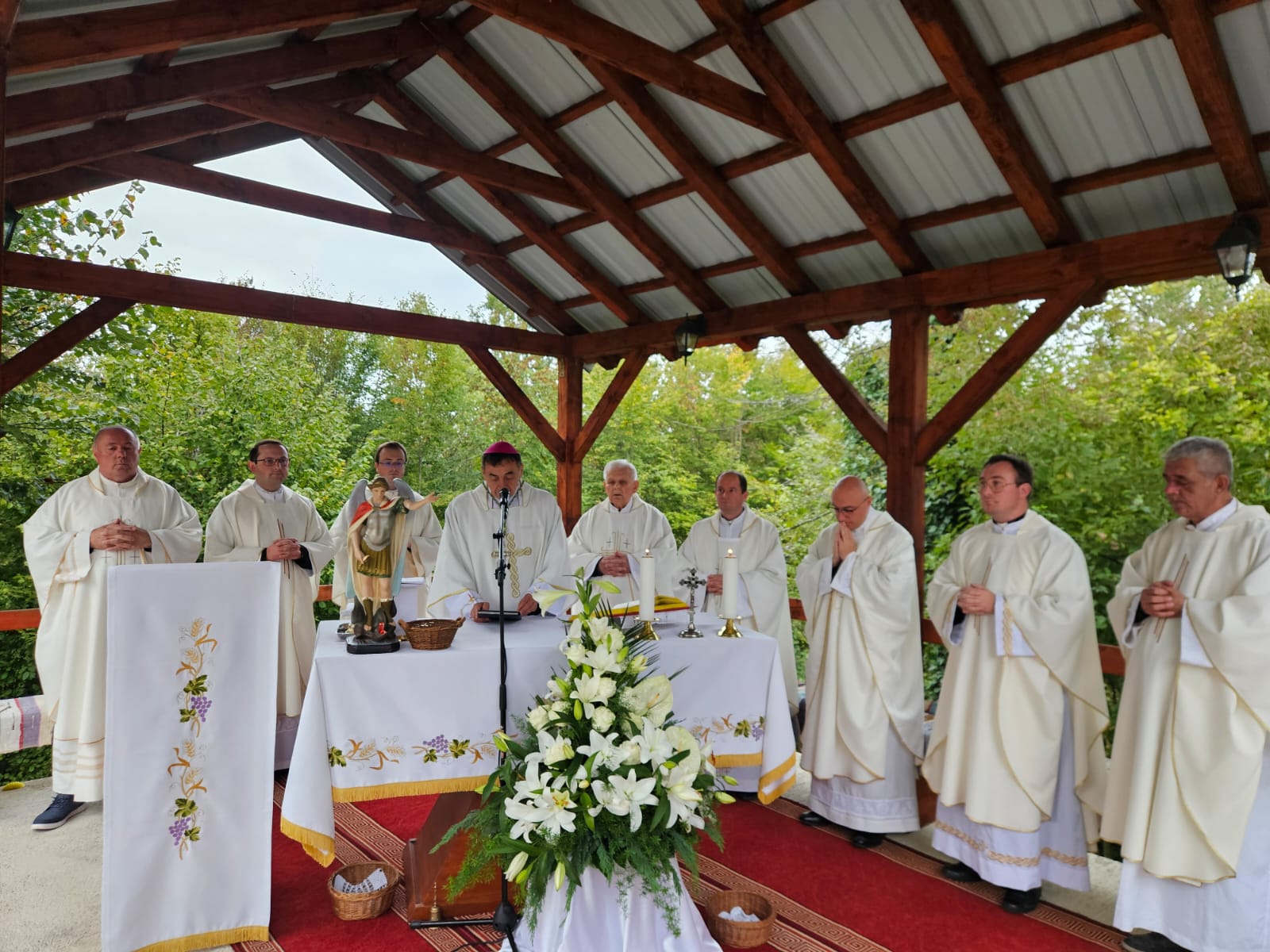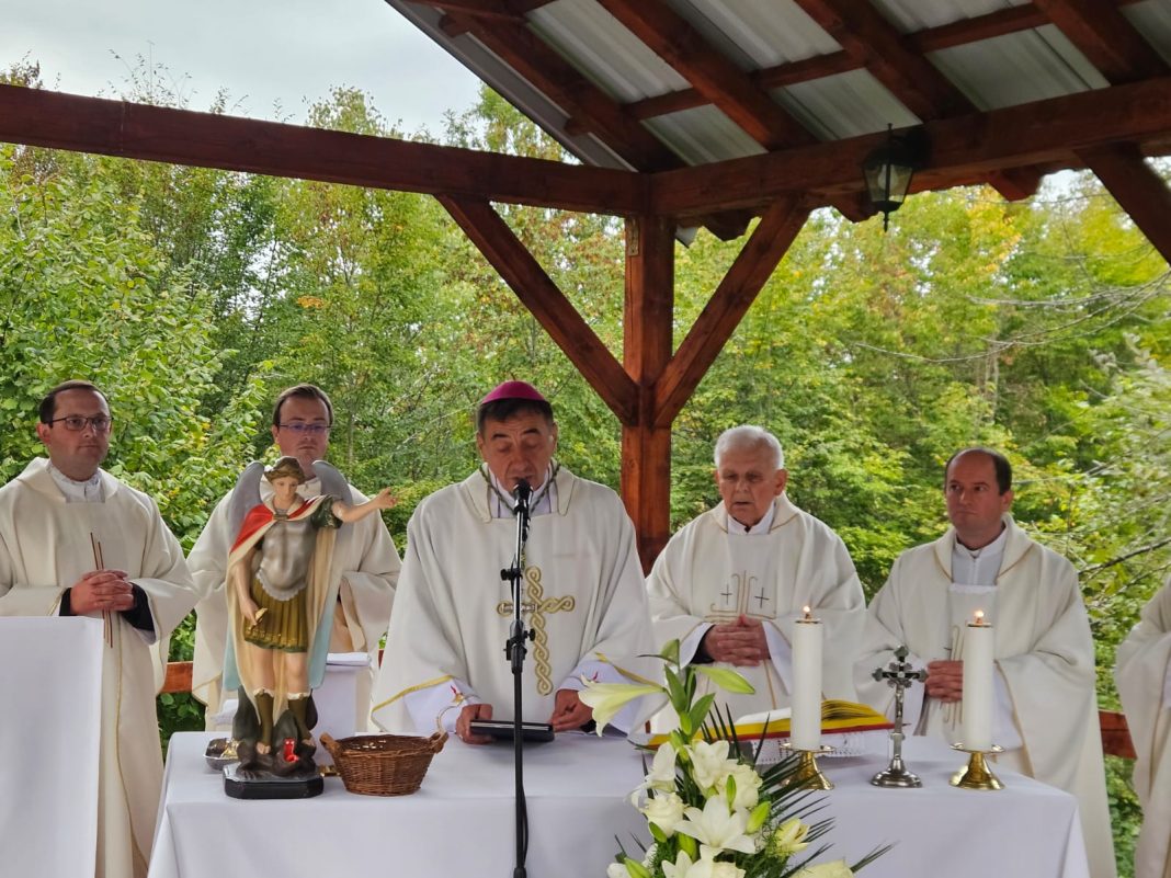Tržić Kamenica, 27. rujna 2025. — U svečanom ozračju vjere, molitve i zajedništva, vjernici župe Tržić Kamenica svečano su proslavili svetkovinu svetog Mihaela arkanđela, nebeskog zaštitnika svoje crkve. Središnje misno slavlje predvodio je gospićko-senjski biskup mons. Marko Medo, uz koncelebraciju svećenika iz Gospićko-senjske biskupije. Liturgijsko slavlje dodatno je obogatilo pjevanje zbora iz Tounja, koji je svojim glasovima unio duboku duhovnu dimenziju u proslavu.