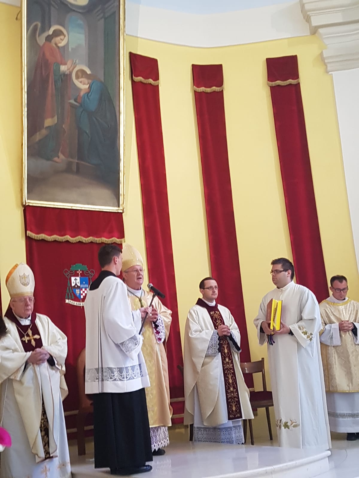 Na kraju sv. mise, župnik preč. Vazgeč čestitao je biskupu Križiću 4. obljetnicu biskupstva zaželivši mu snagu i zdravlje da nas vodi kao hrabar i dobar pastir. Slijedila je svečana zahvalnica Tebe Boga hvalimo, nakon koje je biskup Križić zahvalio i prvom biskupu sada u miru Mili Bogoviću te završio slavlje svečanim blagoslovom.