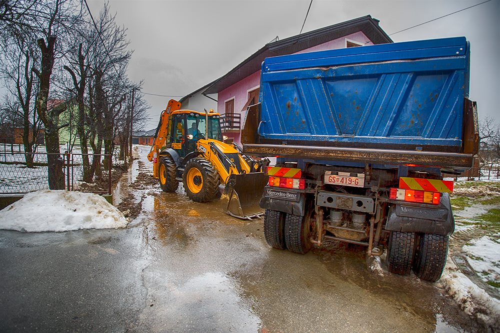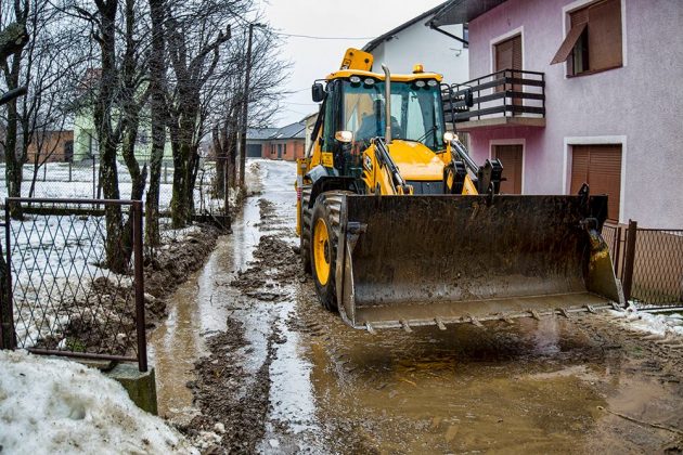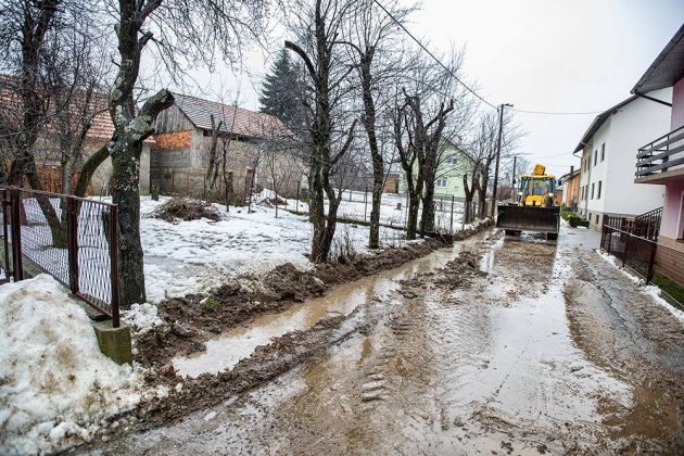 Otapanje snijega potpomognuto povremeno jakom kišom stvorile su nevolje vlasnicima kuća na nekoliko lokacija u Gospiću. Djelatnici i tehnika poduzeća „Lika ceste“ i „Komunalac“ spremno su uskakale u pomoć. Tako je bilo i u ulici Jurline Tomljenovića gdje je došlo do naglog podizanja razine vode u odvodnom kanalu. Za svaki slučaj, nakon čišćenja odvoda postavljene su i vreće s pijeskom.