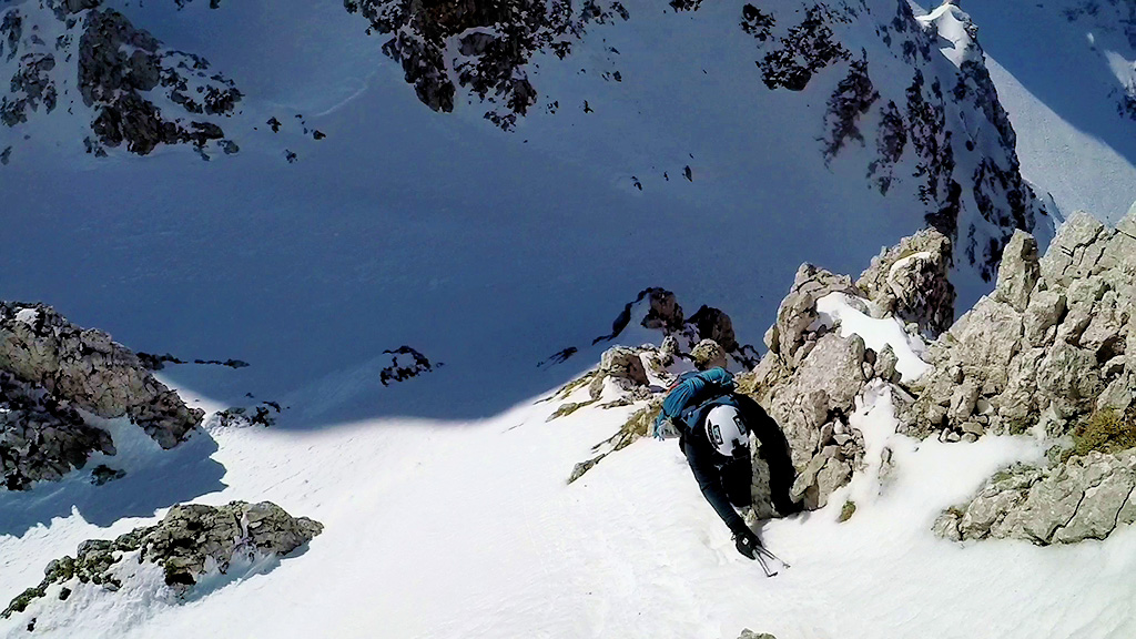 Begunjska vrtača je vrh istočno od poznatog vrha Begunjšćice koji se nalazi u blizini granice Slovenije i Austrije. Pristup do vrha Begunjske vrtače kojim su išli Stipe i Milan u zimskom usponu bila je kombinacija klasičnog uspona cepinima po tvrdom snijegu, dry tooling (penjanje cepinom po stijeni koja nije prekrivena snijegom) i tehničkim penjanjem suhom stijenom. Sam pristup do vrha od doma Zelenice je po siparu prekriven snijegom. Ulaz u kuloar pod Begunjskom vrtačom uspinje se cepinima u dužini oko 700 metara, a nakon toga se dolazi do kuloara koji ima nagib od 40° do 50° i proteže se sjevernom stranom grebena u dužini oko 250 metara. Zatim dolazi do dijela u kojem Stipe i Milan odlučuju nastaviti prvenstveni smjer uspinjući se sjevernim stijenama lijevog dijela kuloara djelomično prekrivenim snijegom s detaljima nagiba od 70°. U tom dijelu počinju koristiti cepin za suhi uspon po stijenama, a daljnjim napredovanjem po većim strminama nastavljaju tehničkim penjanjem koristeći klinove kao međuosiguranje. Stijene nisu kompaktne i u većem dijelu tog područja su hrušljive stoga se ne preporučuje slabije iskusnijim alpinistima. Otpenjavanje su napravili u više faza i to kroz višestruki absail užetom, otpenjavanje cepinom po snijegu te tehnikom brzog spusta cepinom. Prvenstveno ispenjani smjer procjenjen je u dužini od oko 100 metara te su ga Stipe i Milan nazvali “Hrušljivi kamen”. Također navode kako su u pothvatu imali podršku od kolega Slovenaca te se zahvaljuju Slovenskom kolegi Benji. Treba napomenuti kako su Milan i Stipe ovaj uspjeh ostvarili u jednom danu na način da su krenuli iz Otočca ujutro u 04,30 i vratili se isti dan navečer u 20,00 sati.