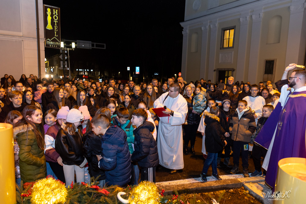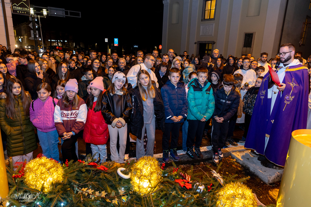 Nakon večernje mise u katedrali Navještenja blažene djevice Marije, brojni vjernici okupili su se kod kipa Marte vodarice u središtu grada, gdje je postavljen adventski vijenac. Svetu misu i molitvu predvodio je župnik gospićke župe o. Marko Maglić.