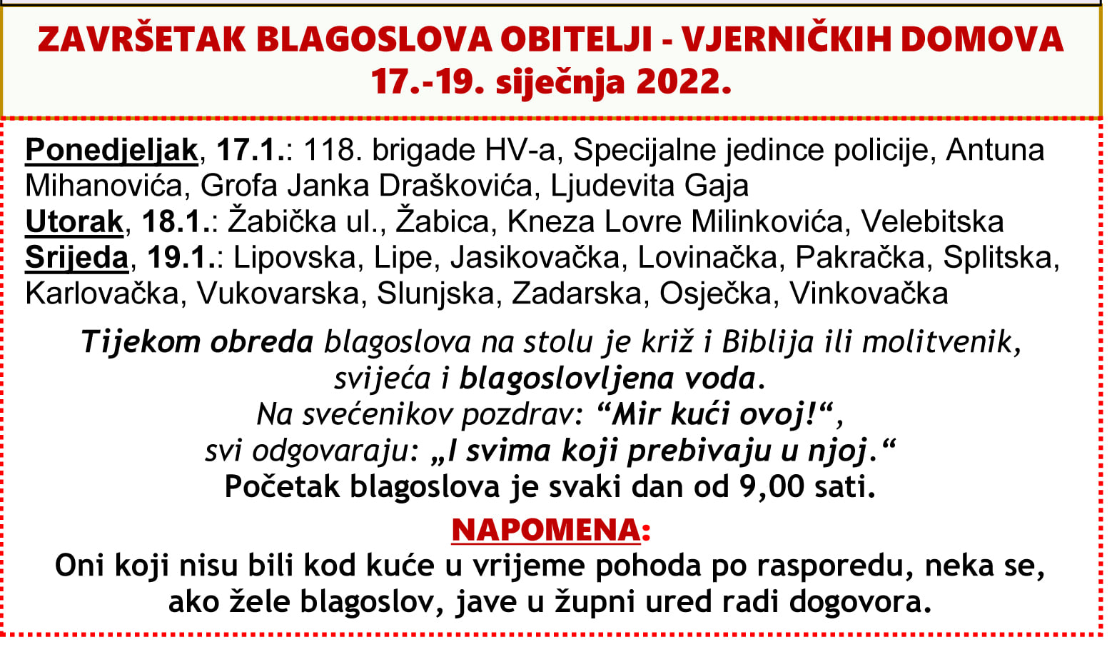 Home Gospić Raspored blagoslova obitelji-vjerničkih domova 17.-19. siječnja 2022. GospićKulturavijesti Raspored blagoslova obitelji-vjerničkih domova 17.-19. siječnja 2022. By Nikola Mraović - 17 siječnja, 2022 0 Facebook Gs Press RELATED ARTICLESMORE FROM AUTHOR Troskot traži očitovanje Grada Gospića o zaprimanju otpada Potpisani ugovori vrijedni 314.000 eura: gotovo 50 % više sredstava za operativne službe i turizam 36-godišnjak i 32-godišnjakinja iz Gospića mjesecima prodavali kokain i marihuanu