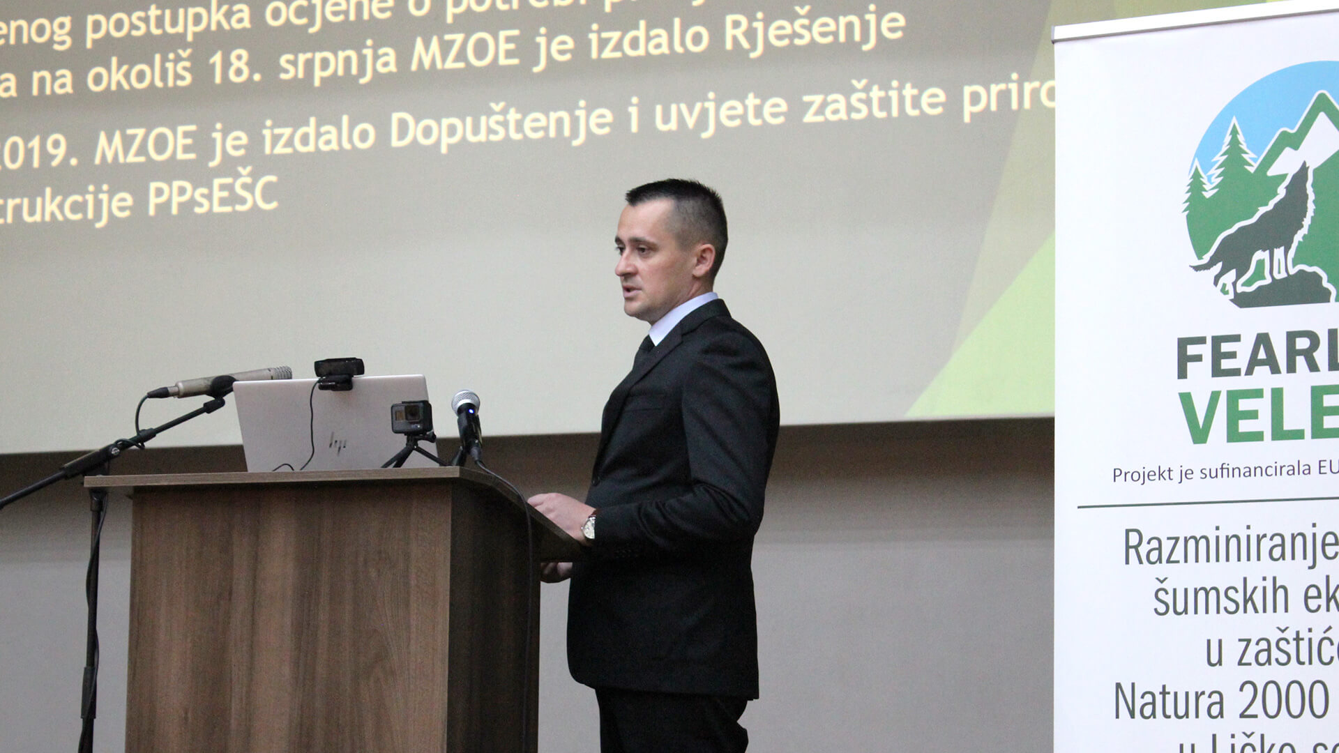 Nakon pozdravnih govora i iskazane potpore i pohvala od strane ministra Ćorića i ostalih uzvanika, prezentaciju projekta, njegovih ciljeva, planova i do sada izvedenih aktivnosti održao je voditelj projekta Božidar Ćaćić. Na temu provedbe i izazova na poslovima razminiranja u projektu Fearless Velebit okupljenima se obratio načelnik Nikša Bogdanić, te nakon njega ravnateljice Natalija Andačić i Ana Brkljačić koje su prisutne upoznale s projektnim aktivnostima u Nacionalnom parku Paklenica i Parku prirode Velebit.