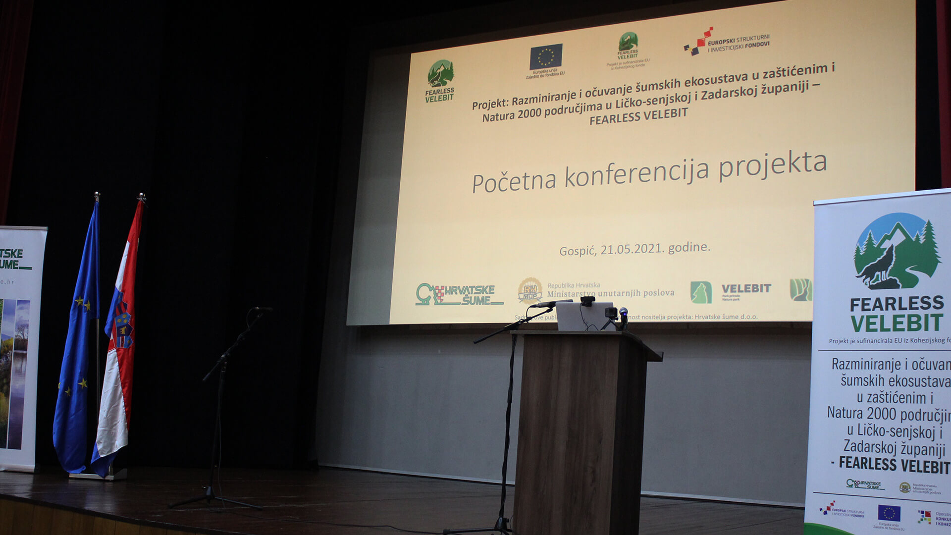 U kino dvorani pučkog otvorenog učilišta Gospić održane su radionica i početna konferencija u projektu Razminiranje i očuvanje šumskih ekosustava u zaštićenim i Natura 2000 područjima u Ličko-senjskoj i Zadarskoj županiji – Fearless Velebit. Radionica se održala u četvrtak 20.05.2021. godine, a početna konferencija projekta u petak 21.05.2021. godine s početkom u 10:00 sati.