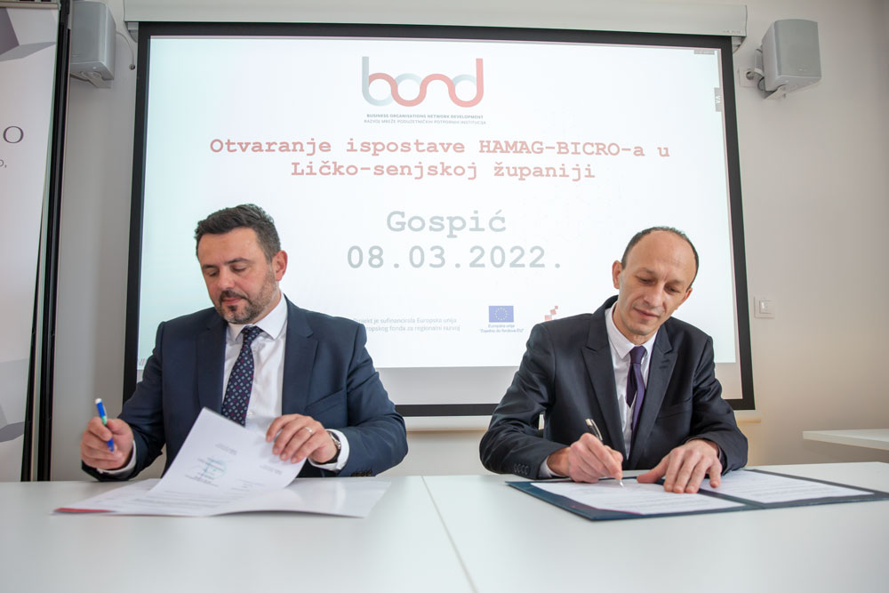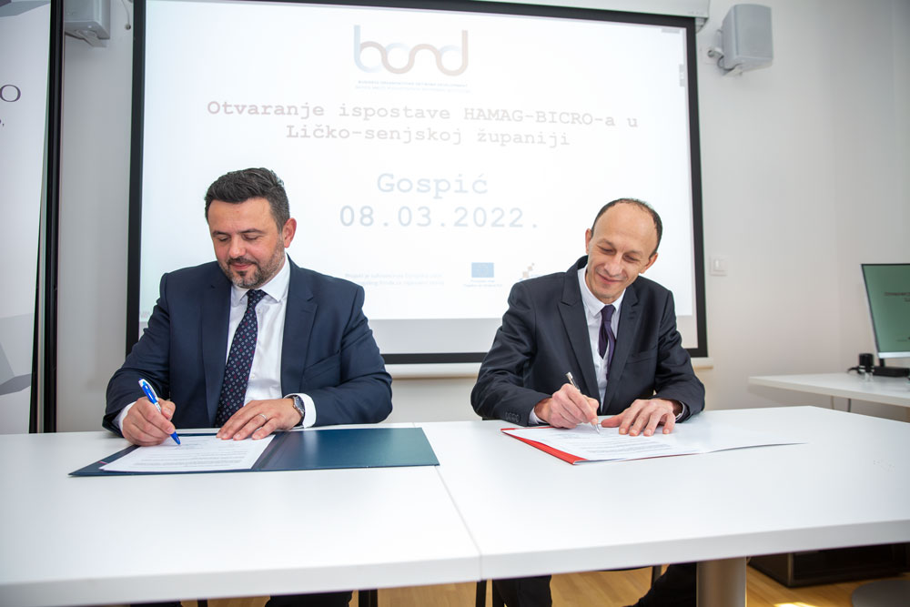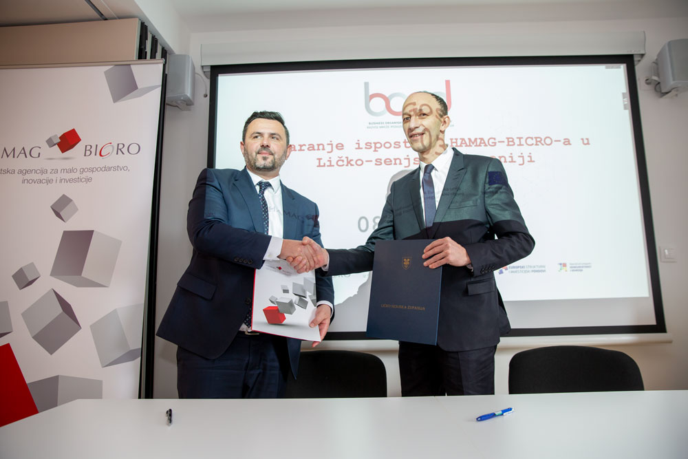 Kako bi se intenzivirao razvoj gospodarstva u Ličko-senjskoj županiji danas je u Razvojnom centra Ličko-senjske županije u Gospiću potpisan Sporazum o suradnji između HAMAG-BICRO-a i Ličko-senjske županije. Potpisivanju je nazočio ministar gospodarstva i održivog razvoja Tomislav Ćorić, dok su svoje potpise na sporazum stavili ličko-senjski župan Ernest Petry i predsjednik Uprave HAMAG- BICRO-a Vjeran Vrbanec.
