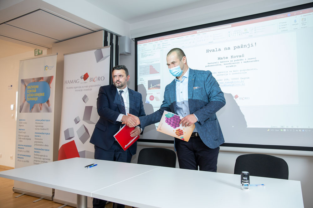Pri tome je župan Petry naglasio važnost potpisivanja današnjeg Sporazuma jer će na taj način budućim poduzetnicima ličko-senjske županije biti dostupne brojne usluge jer su u Razvojnom centru otvorene nove radne prostorije ispostave HAMAG-BICRO.