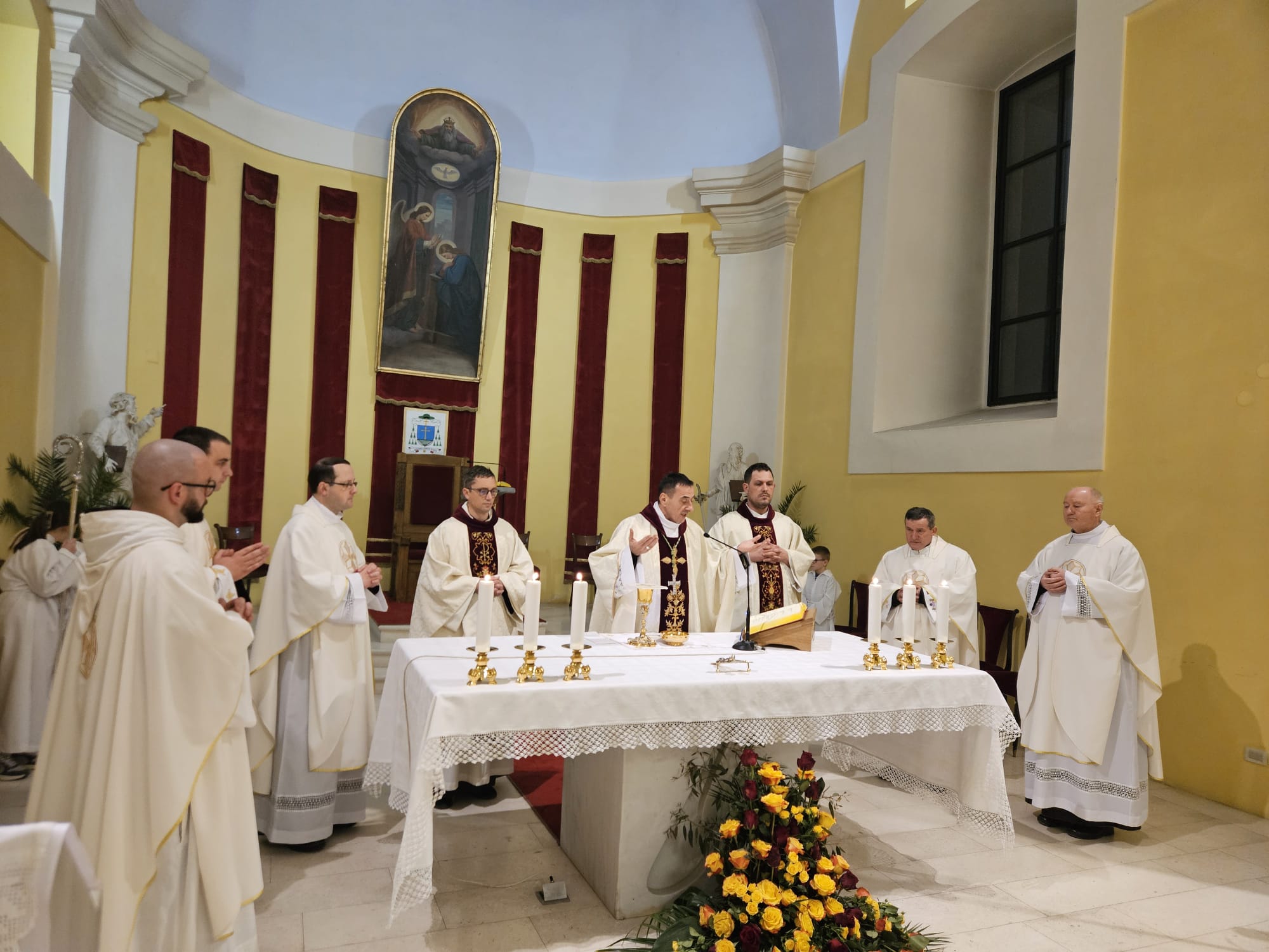 Nakon predavanja, u katedrali Navještenja Blažene Djevice Marije slavljena je sveta misa, koju je predvodio biskup Medo u koncelebraciji s prisutnim redovnicima i svećenicima iz biskupijskih ustanova. Liturgijsko pjevanje animirao je katedralni zbor pod vodstvom Nikole Perišića.