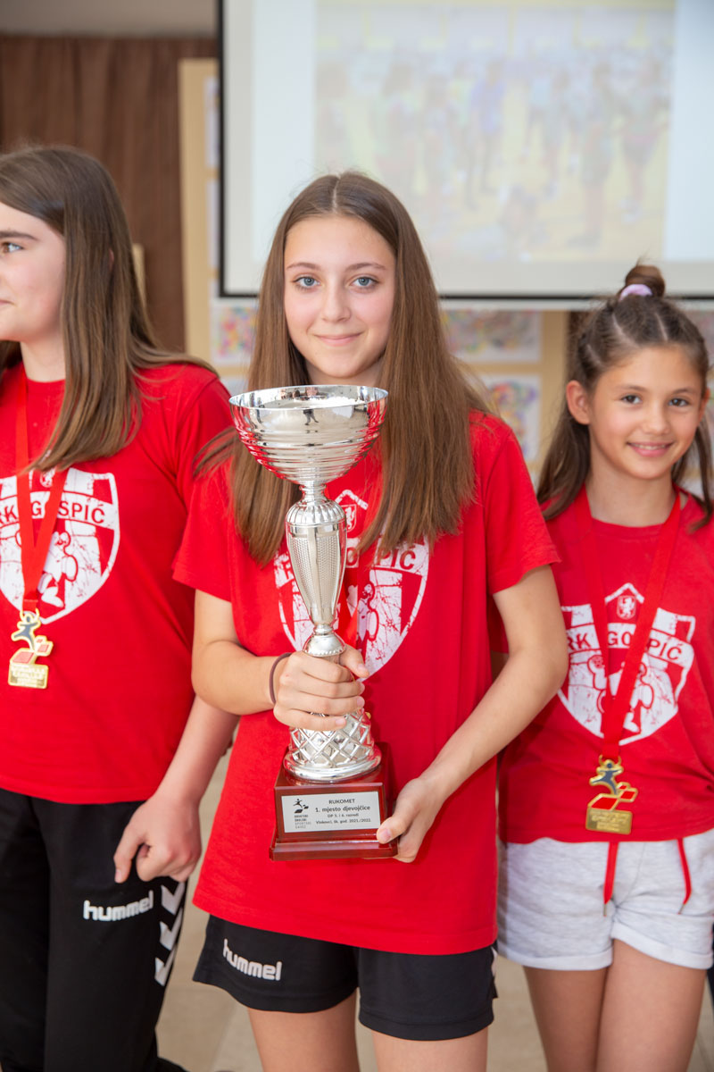 Nakon zlatnih dječaka 7. i 8. razreda iz ožujka 2022., danas su djevojčice 5. i 6. razreda OŠ „dr. Jure Turić“ iz Gospića osvojile 1. mjesto i zlatnu medalju na Državnom prvenstvu u rukometu za učenike osnovnih škola u Vinkovcima u organizaciji Hrvatskog školskog sportskog saveza.