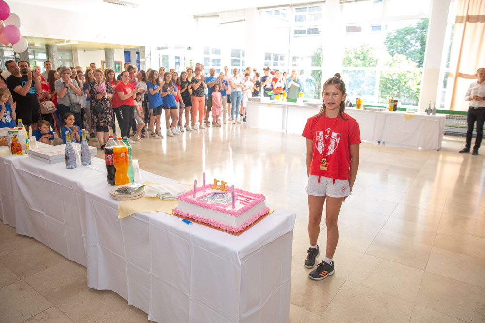 U trenu je „planula“ slavljenička torta, neprestano se čulo škjlocanja foto-aparata i mobitela, a sve to u slavu djevojčica koje su postale rukometne prvakinje države svojega godišta. Iskrene čestitke gospićkim „lavicama“ i neka samo tako nastave u godinama koje dolaze.
